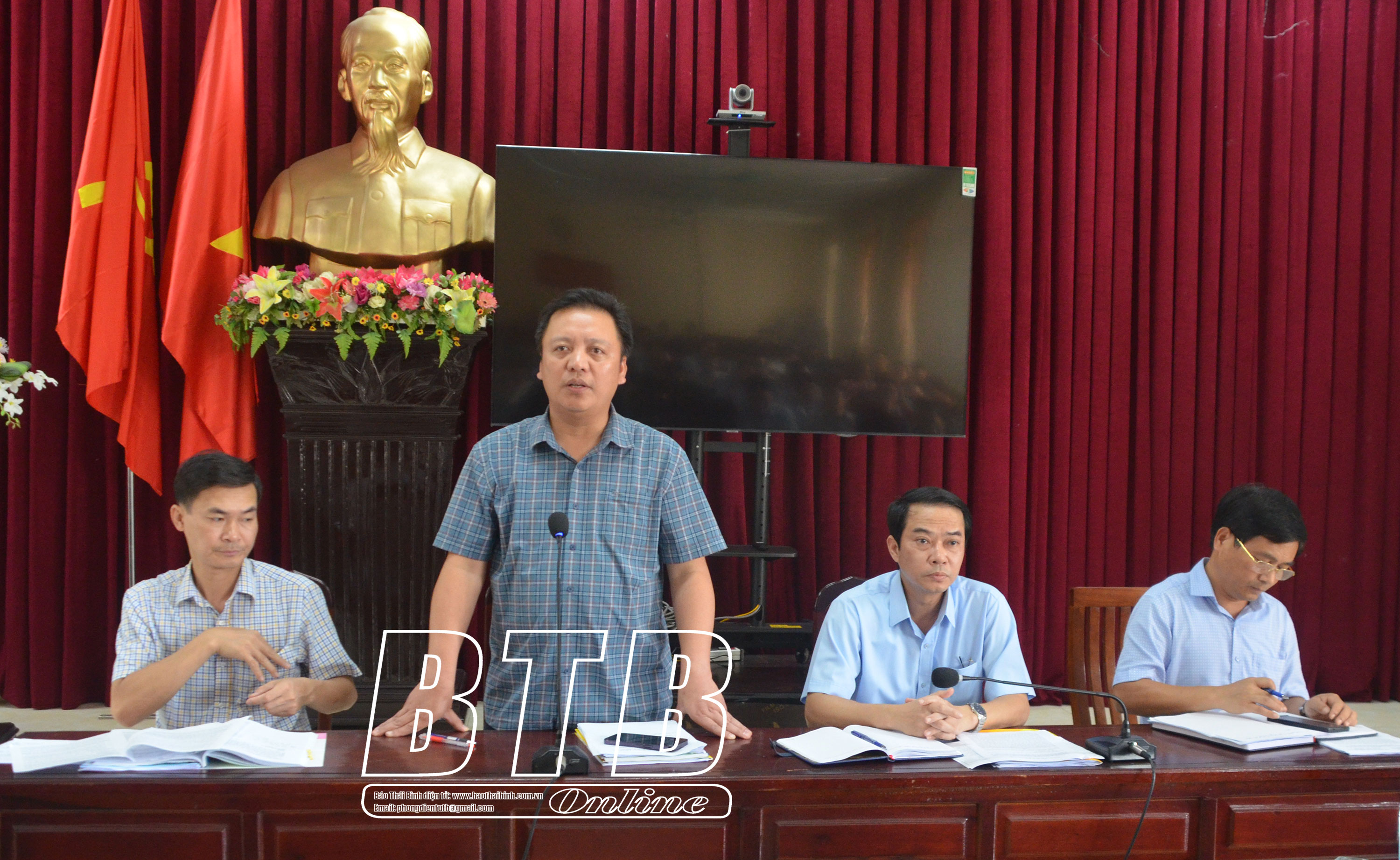 Lãnh đạo UBND huyện Tiền Hải phát biểu tại buổi tiếp xúc, đối thoại.