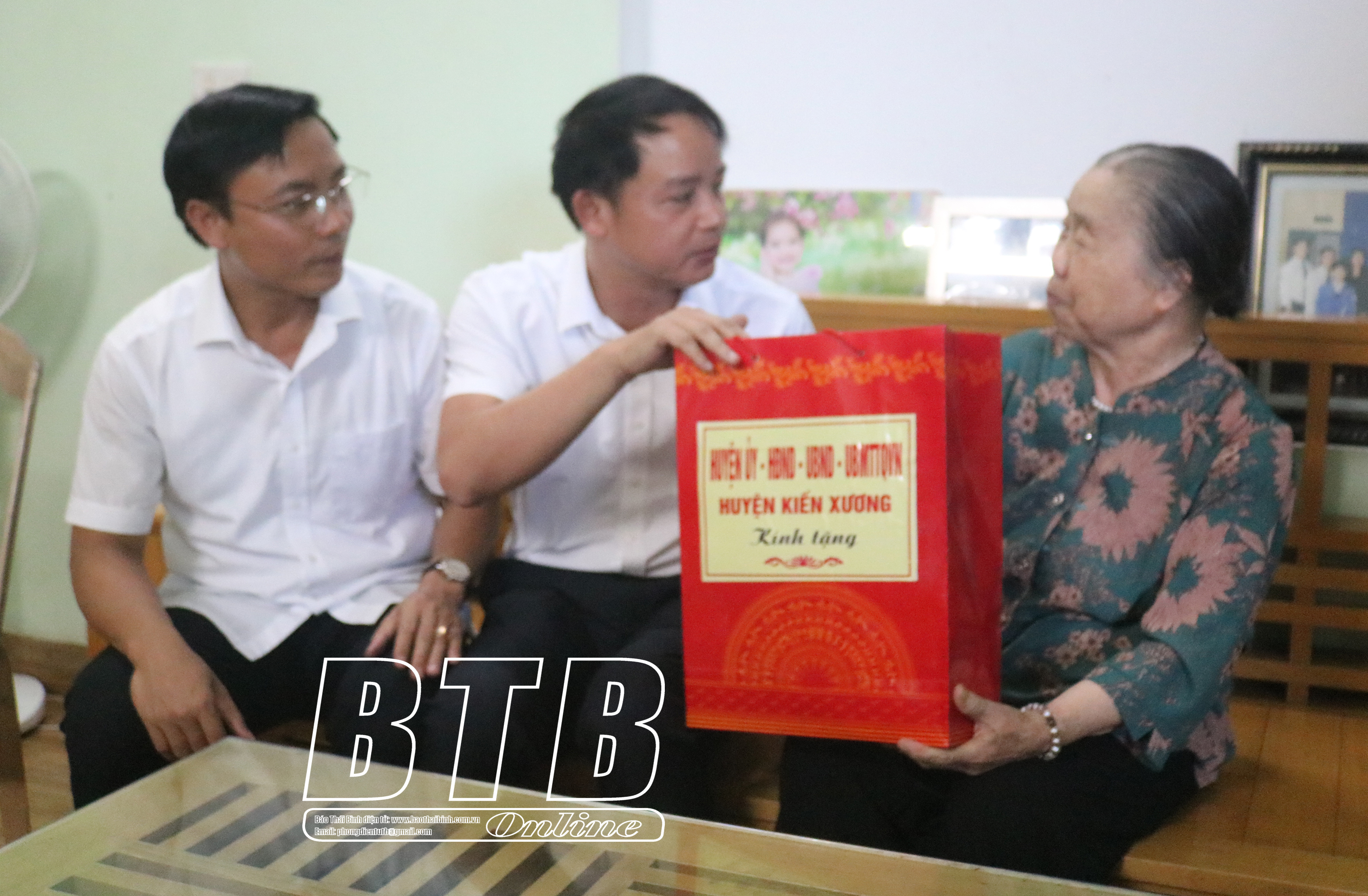 Lãnh đạo huyện Kiến Xương tặng quà Bà mẹ Việt Nam anh hùng Nguyễn Thị Liên.