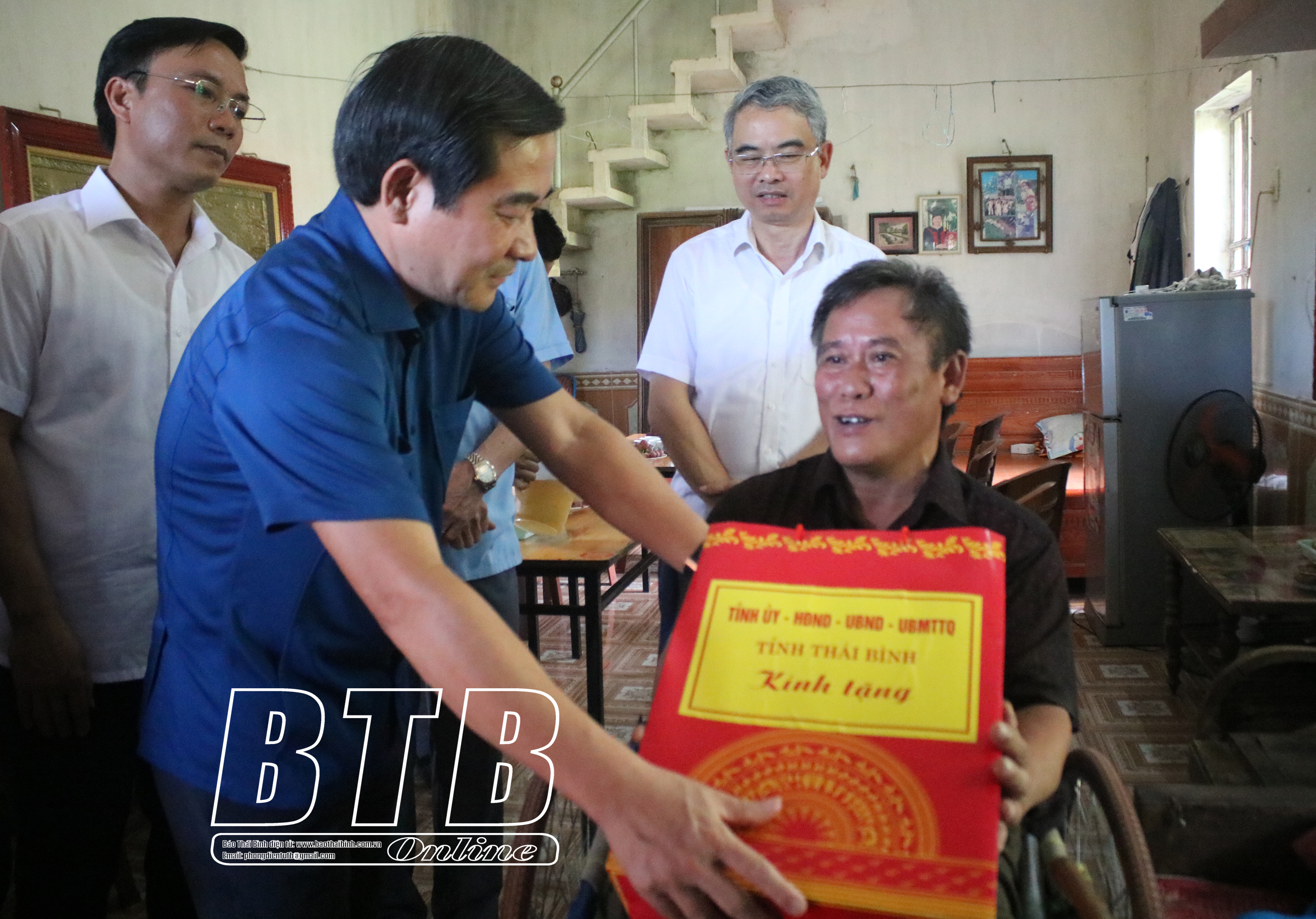 Lãnh đạo huyện Kiến Xương tặng quà thương binh nặng 1/4 Trần Văn Đạt.