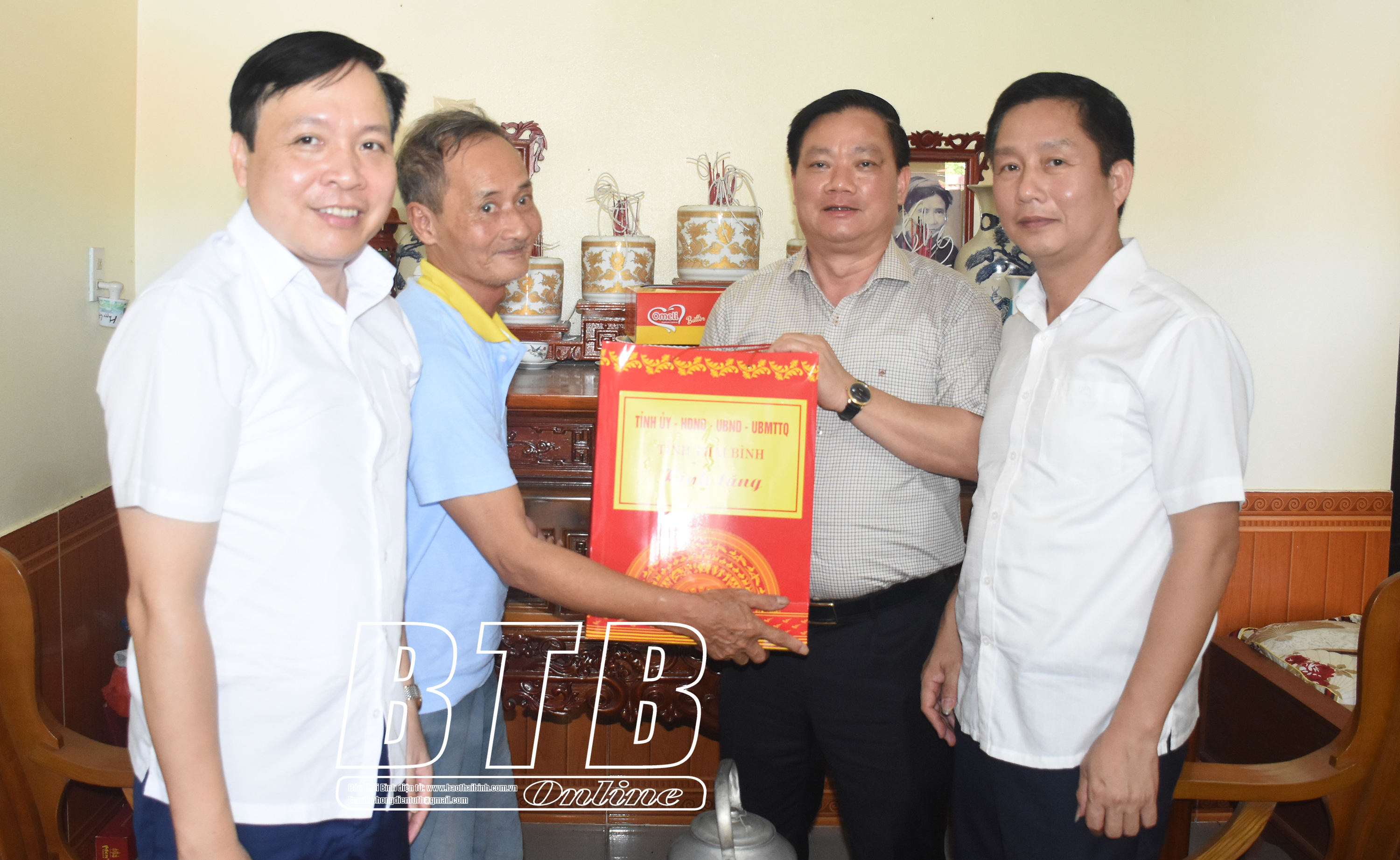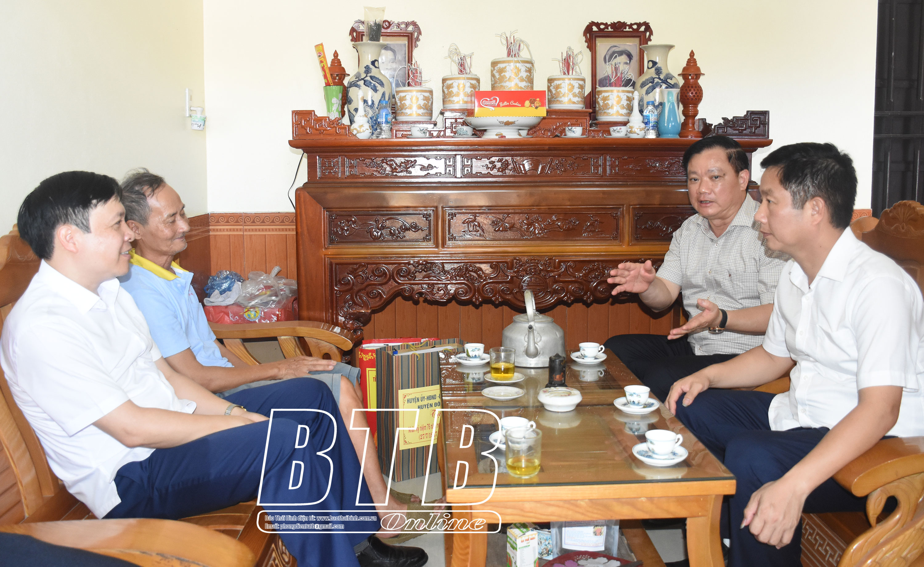 Tại những nơi đến thăm, đồng chí Phó Bí thư Tỉnh ủy, Chủ tịch UBND tỉnh đã ân cần thăm hỏi sức khỏe và tặng quà của Tỉnh ủy, HĐND, UBND, Ủy ban MTTQ tỉnh cho các gia đình chính sách. Bày tỏ sự biết ơn sâu sắc trước những đóng góp to lớn cho cách mạng của gia đình liệt sĩ Đặng Công Đảng và thương binh nặng Nguyễn Văn Bào, đồng chí Phó Bí thư Tỉnh ủy, Chủ tịch UBND tỉnh khẳng định truyền thống “Uống nước nhớ nguồn” là một trong những đạo lý tốt đẹp của dân tộc. Đảng bộ, chính quyền và nhân dân tỉnh Thái Bình luôn ghi nhớ công lao của các liệt sĩ, các thương binh, bệnh binh đã không ngại gian khổ, hy sinh xương máu cho sự nghiệp đấu tranh giải phóng dân tộc. Đồng chí chúc bà Đỗ Thị Ngõ, thương binh nặng Nguyễn Văn Bào cùng gia đình luôn luôn mạnh khỏe, tiếp tục phát huy truyền thống tốt đẹp của gia đình, là tấm gương sáng, giáo dục con cháu chấp hành tốt mọi chủ trương, đường lối của Đảng, chính sách, pháp luật của Nhà nước, tích cực tham gia phát triển kinh tế để góp phần xây dựng quê hương ngày càng giàu đẹp. Đồng chí cũng đề nghị cấp ủy, chính quyền địa phương tiếp tục quan tâm, tạo điều kiện hơn nữa đến các gia đình người có công với cách mạng, chăm lo để gia đình người có công có cuộc sống tốt hơn.