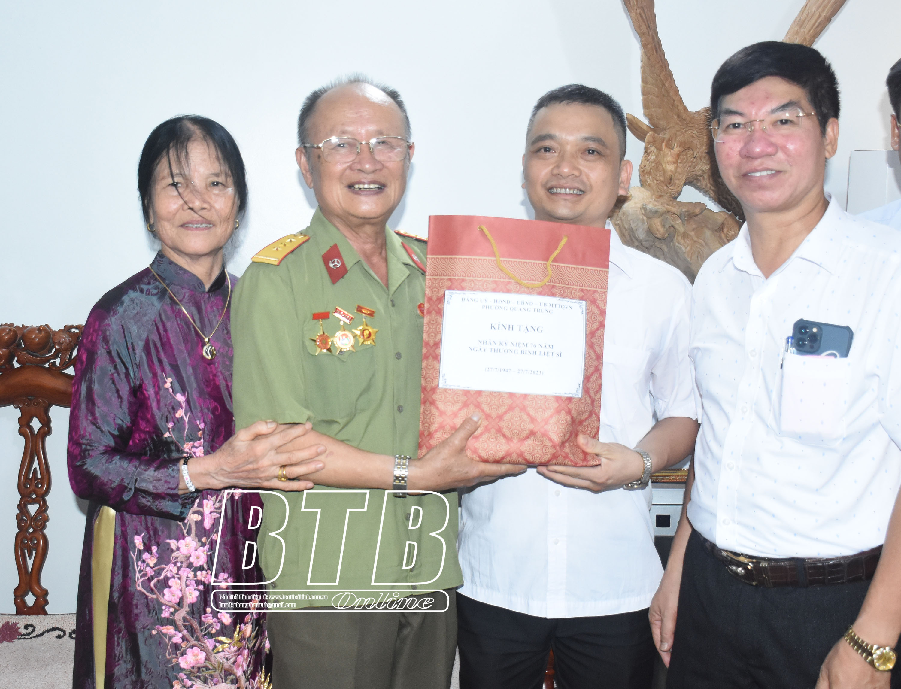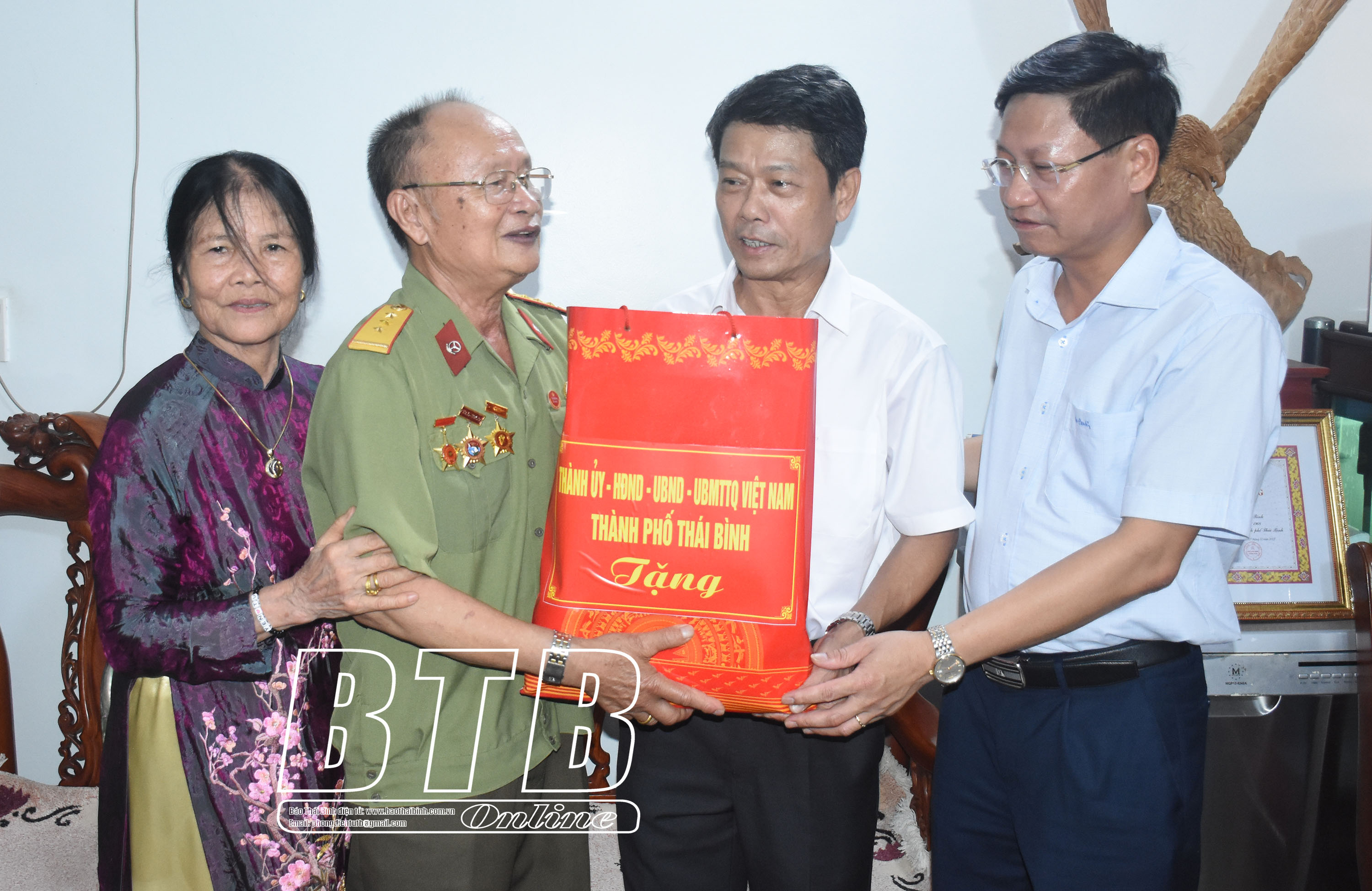 Cùng đi có các đồng chí: Đại tá Trần Văn Phúc, Ủy viên Ban Thường vụ Tỉnh ủy, Giám đốc Công an tỉnh; Hoàng Văn Thành, Ủy viên Ban Thường vụ Tỉnh ủy, Bí thư Thành ủy, Chủ tịch HĐND thành phố; lãnh đạo Sở Lao động – Thương binh và Xã hội và thành phố Thái Bình.