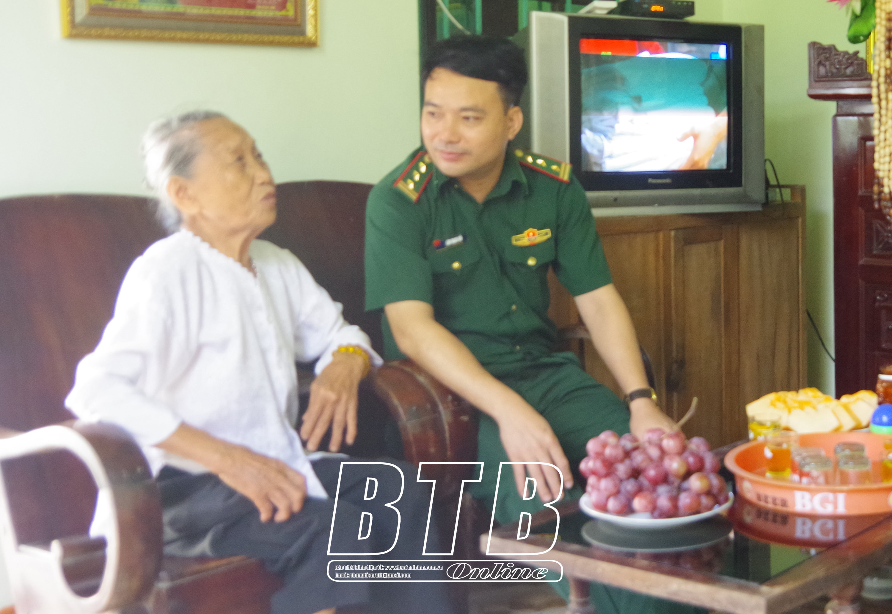 Lãnh đạo Bộ Chỉ huy BĐBP tỉnh thăm hỏi, tặng quà gia đình thiếu tá Nguyễn Thái Dương (con liệt sĩ), tổ dân phố số 1, thị trấn Tiền Hải.