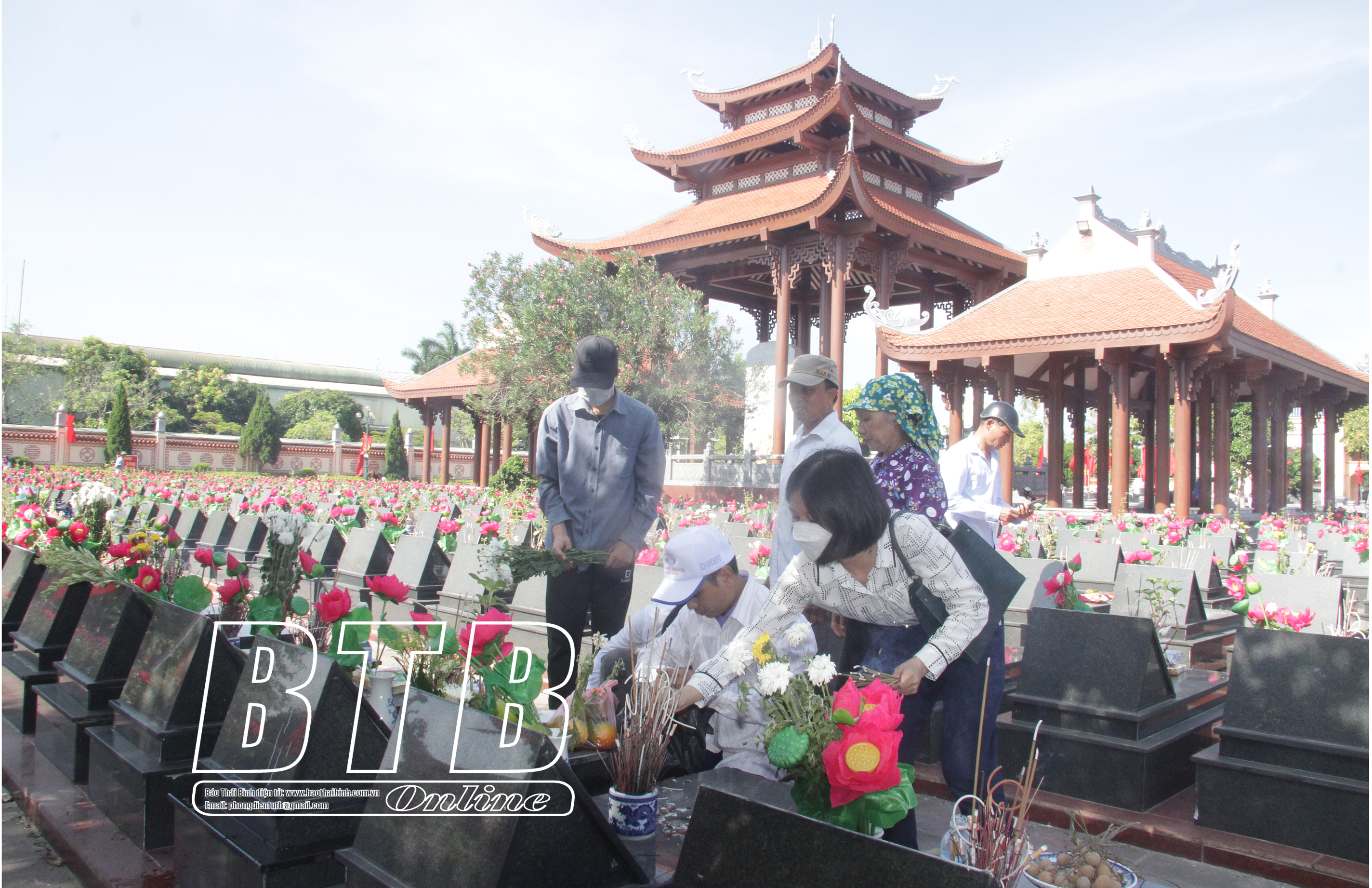 Các thân nhân gia đình liệt sĩ trên địa bàn huyện Tiền Hải thắp hương trên các phần mộ tại Nghĩa trang Liệt sĩ trung tâm huyện.