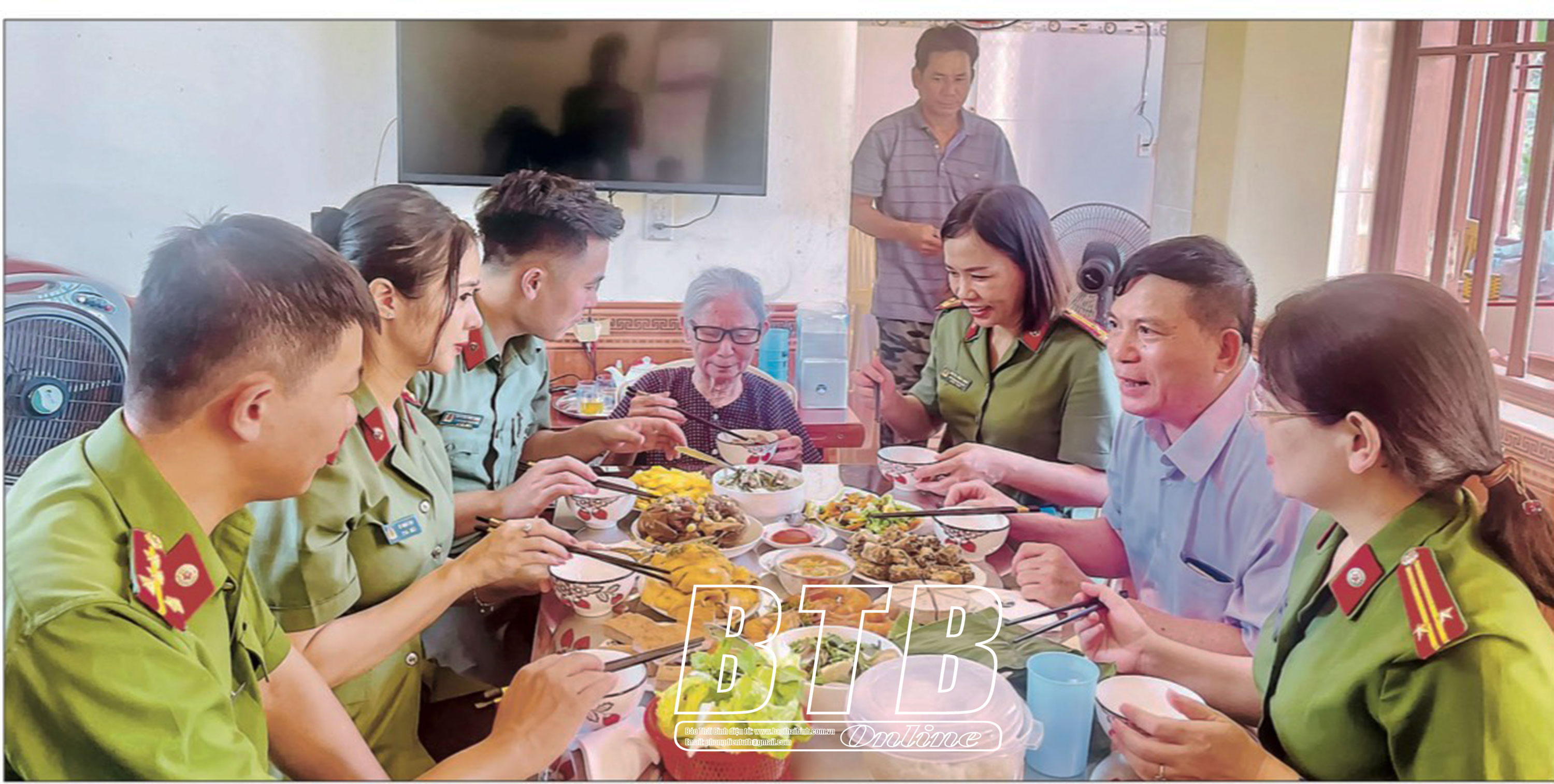 Đoàn Thanh niên, Hội Phụ nữ Công an tỉnh phối hợp với Công an huyện Đông Hưng, Công an xã Đông Á tổ chức chương trình “Bữa cơm cùng mẹ” tại gia đình mẹ Việt Nam anh hùng Lê Thị Uyên.