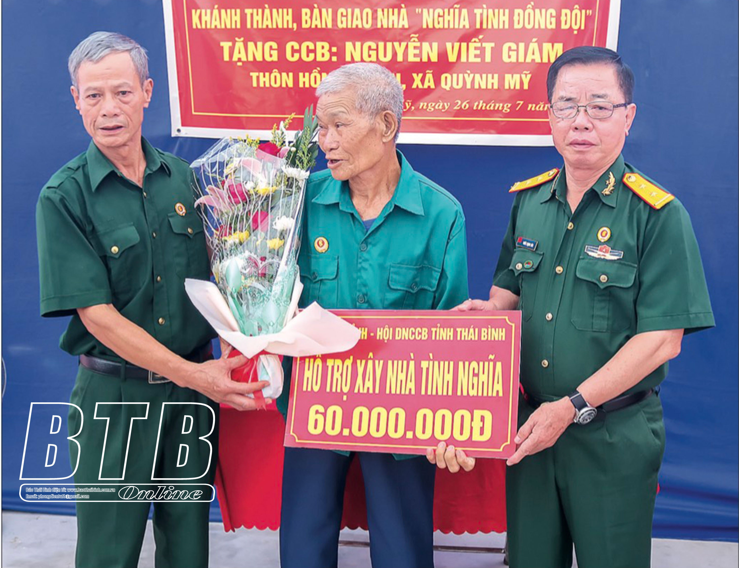 Lãnh đạo Hội Cựu chiến binh tỉnh và Hội Doanh nhân cựu chiến binh tỉnh trao kinh phí hỗ trợ xây nhà tình nghĩa cho cựu chiến binh Nguyễn Viết Giám, xã Quỳnh Mỹ (Quỳnh Phụ).