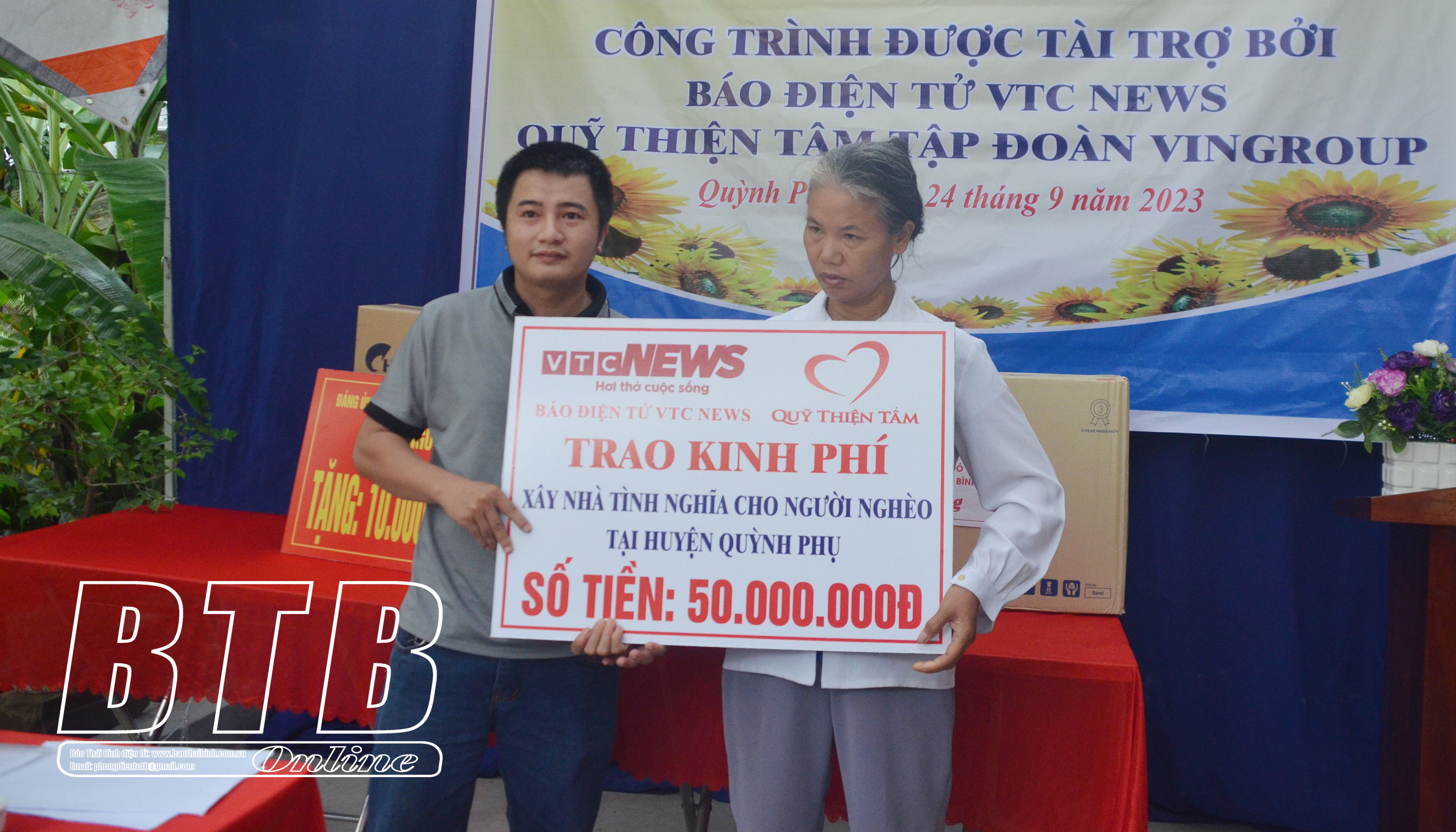Gia đình bà Nguyễn Thị Tới là hộ nghèo của xã, hoàn cảnh gia đình rất khó khăn. Bà có 3 người con trong đó 2 người bị thiểu năng trí tuệ sống cùng mẹ. Tuổi cao nên mọi sinh hoạt trong gia đình chỉ trông chờ vào các chính sách bảo trợ xã hội của Nhà nước. Căn nhà cấp 4 rộng 30m2 sau nhiều năm xuống cấp nhưng không có kinh phí sửa chữa. Qua rà soát, Hội Chữ thập đỏ huyện Quỳnh Phụ kêu gọi các hảo tâm ủng hỗ kinh phí để hỗ trợ gia đình bà Tới xây lại nhà mới. Căn nhà khởi công từ tháng 6/2023, sau gần 4 thi công căn nhà đã hoàn thiện với tổng kinh phí trên 100 triệu đồng, trong đó Báo Điện tử VTC News, Quỹ Thiện tâm (Đài Tiếng nói Việt Nam) ủng hộ 50 triệu đồng cùng sự giúp đỡ chính quyền địa phương và dòng họ.