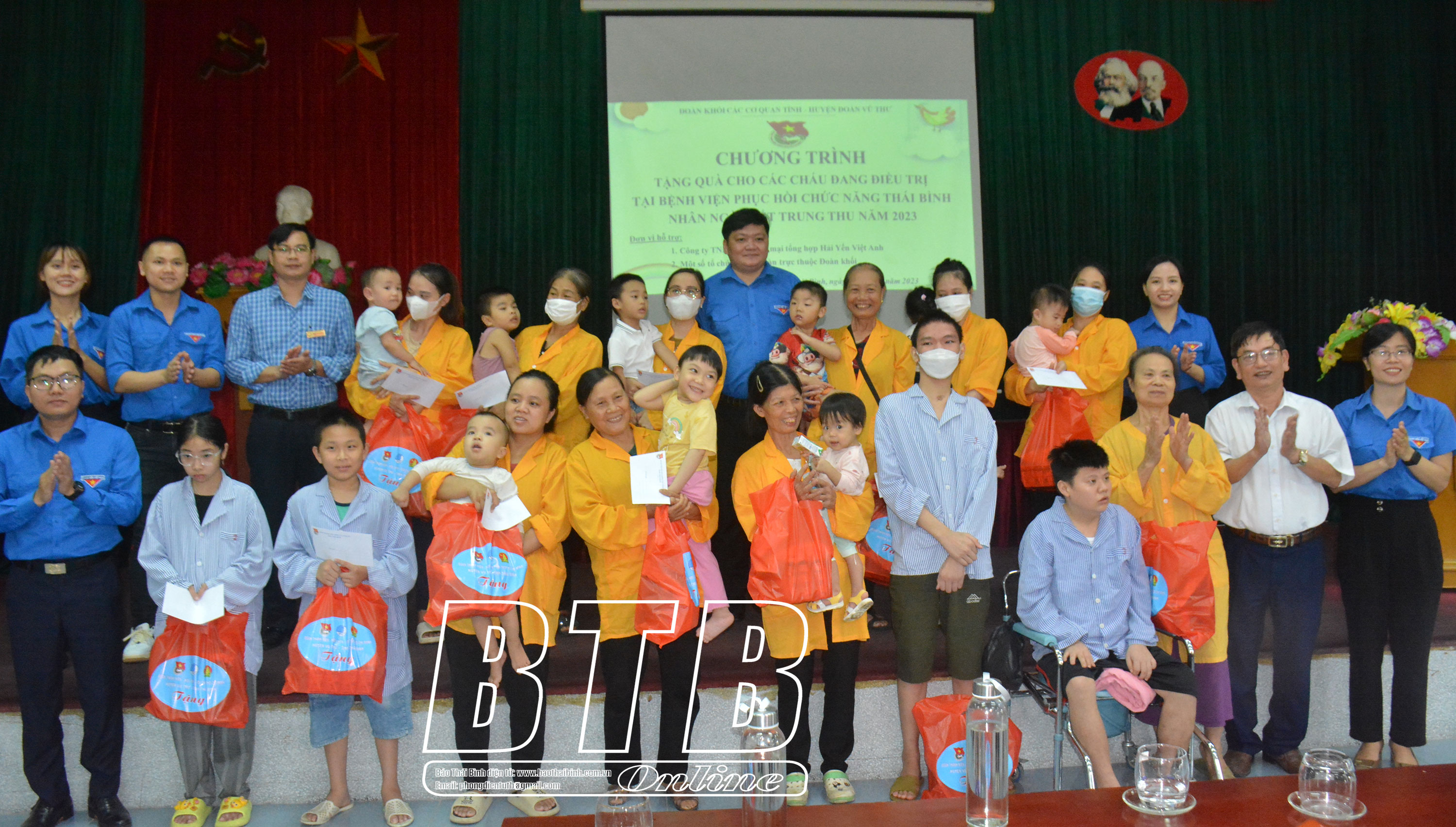 56 thiếu nhi có hoàn cảnh khó khăn, bệnh nặng đang được điều trị tại 2 bệnh viện được nhận quà với tổng trị giá 34,5 triệu đồng. Số quà này của Tỉnh đoàn, Ban Thường vụ Đoàn Khối các cơ quan tỉnh, Huyện đoàn Vũ Thư, Công ty TNHH Thương mại Tổng hợp Hải Yến Việt Anh, Chi đoàn cơ quan Tỉnh đoàn Thái Bình và các cơ sở đoàn, đoàn viên trực thuộc Khối các cơ quan tỉnh.