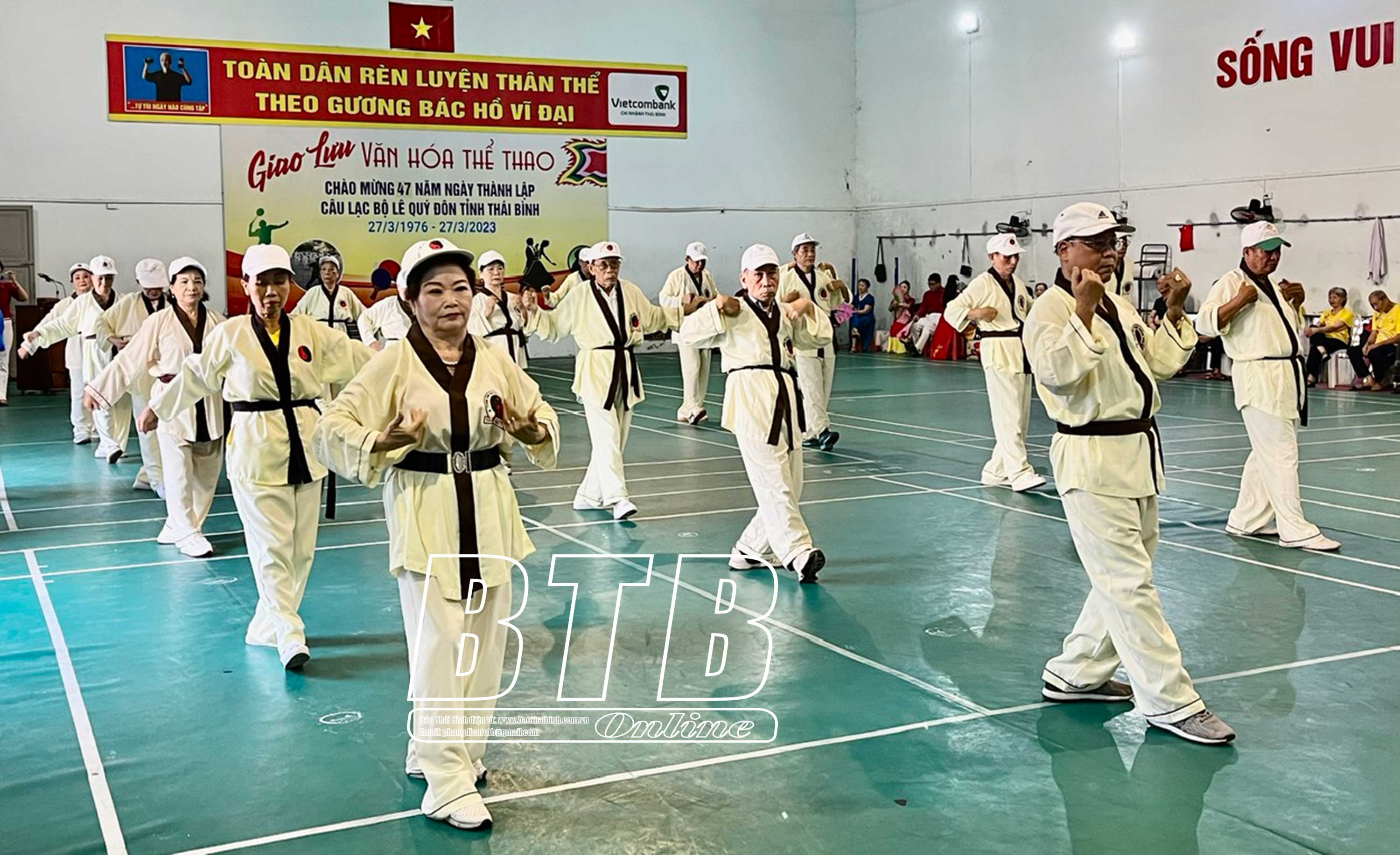 Hội viên Câu lạc bộ Lê Quý Đôn đồng diễn thái cực trường sinh đạo.