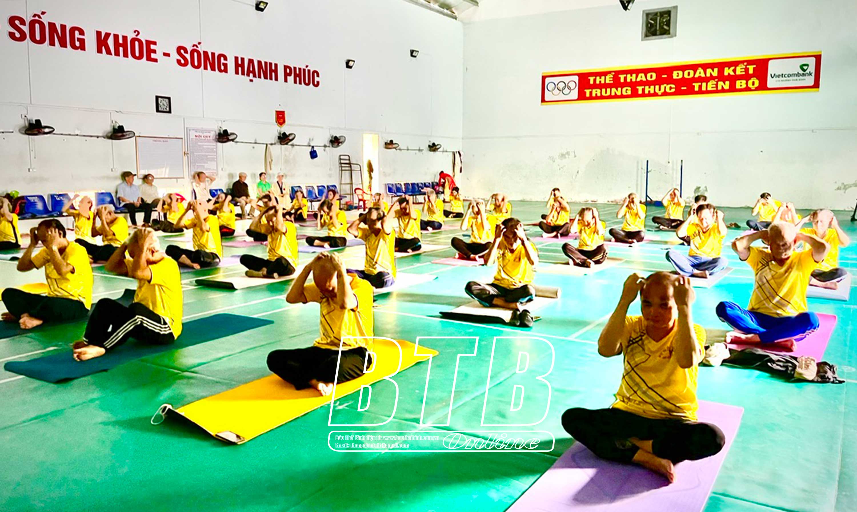 Tiết mục đồng diễn Yoga của hội viên Câu lạc bộ Lê Quý Đôn.