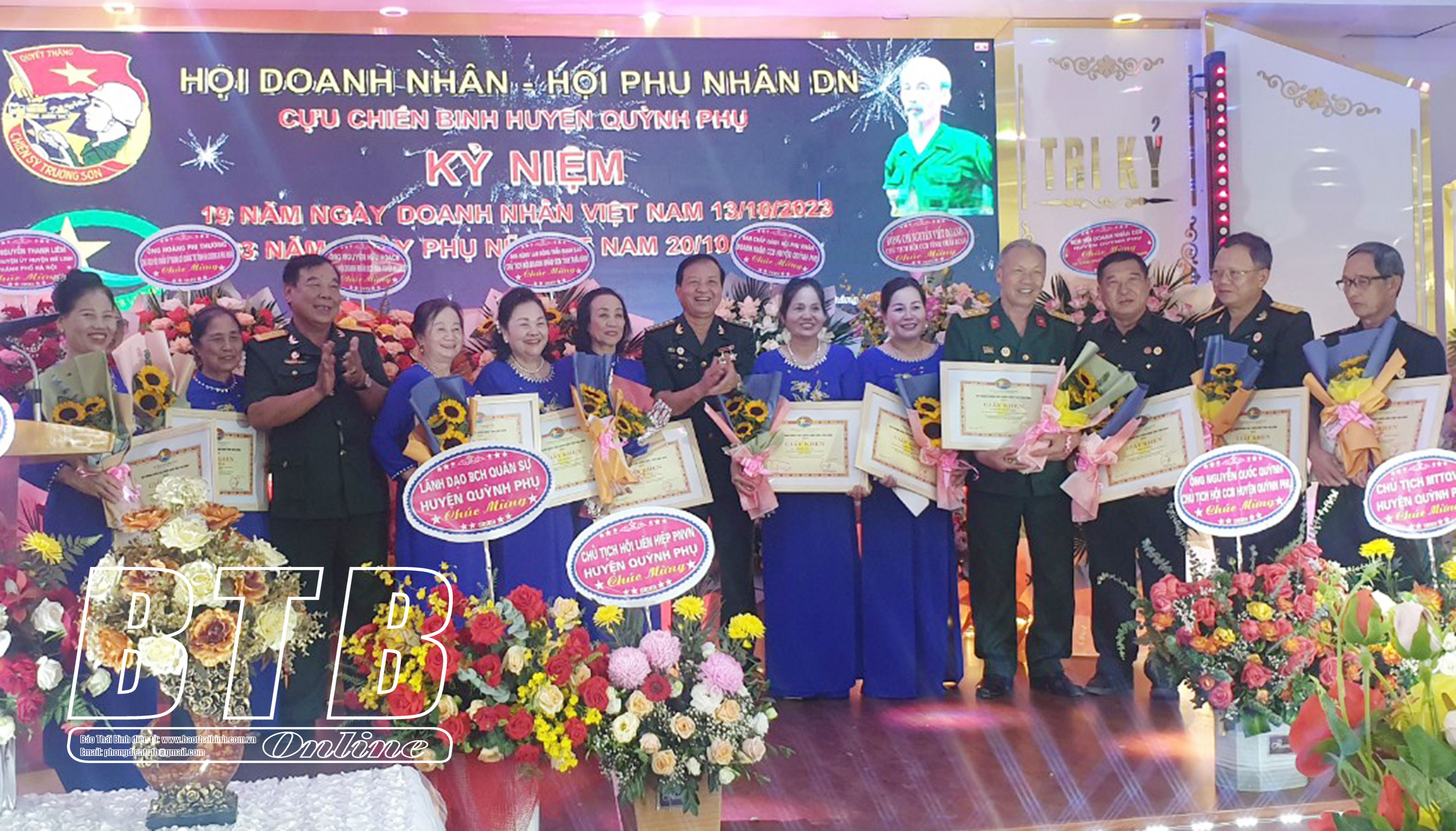Tại lễ kỷ niệm, Hội Doanh nhân CCB tỉnh, UBND huyện Quỳnh Phụ đã khen thưởng cho các tập thể và cá nhân có nhiều thành tích trong công tác hội.