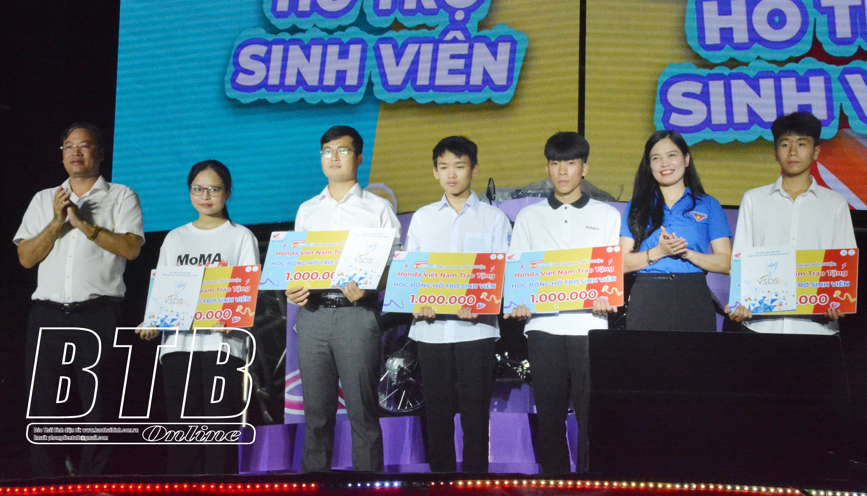 Tại đêm nhạc hội diễn ra phần thi chung kết cuộc thi Tìm kiếm tài năng âm nhạc và vũ đạo. Đây không chỉ là một đêm nhạc hội bùng nổ với những màn biểu diễn sống động của các nghệ sĩ mà còn là chuỗi hoạt động ý nghĩa dành cho học sinh, sinh viên Thái Bình. Nhân dịp này, Honda Việt Nam đã trao 10 suất học bổng cho học sinh, sinh viên vượt khó nỗ lực vươn lên trong học tập.