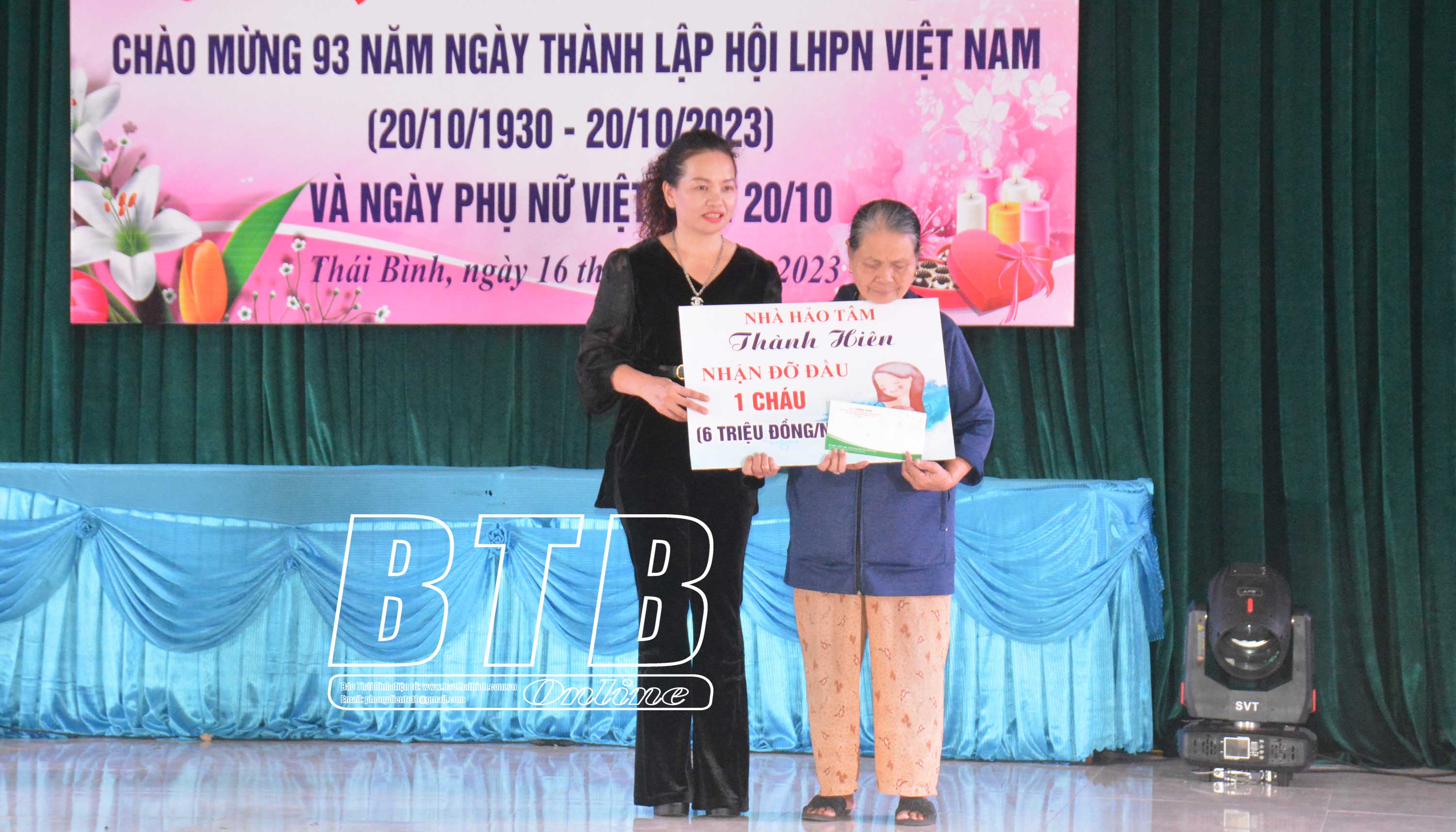 Nhân dịp này, TYM chi nhánh Thái Bình đã trao 5 suất quà cho gia đình thành viên có hoàn cảnh đặc biệt khó khăn; nhà hảo tâm đã trao 6 triệu đồng đỡ đầu 1 trẻ mồ côi trên địa bàn thành phố.