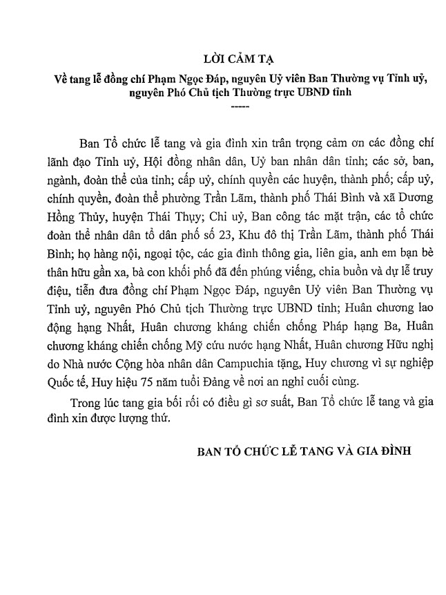 - LỜI CẢM TẠ 05.06.2024 | 12:40 PM