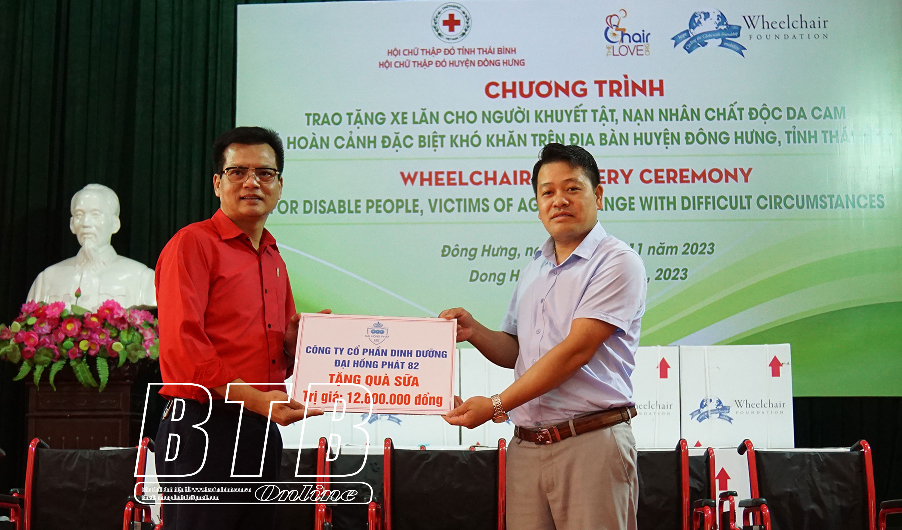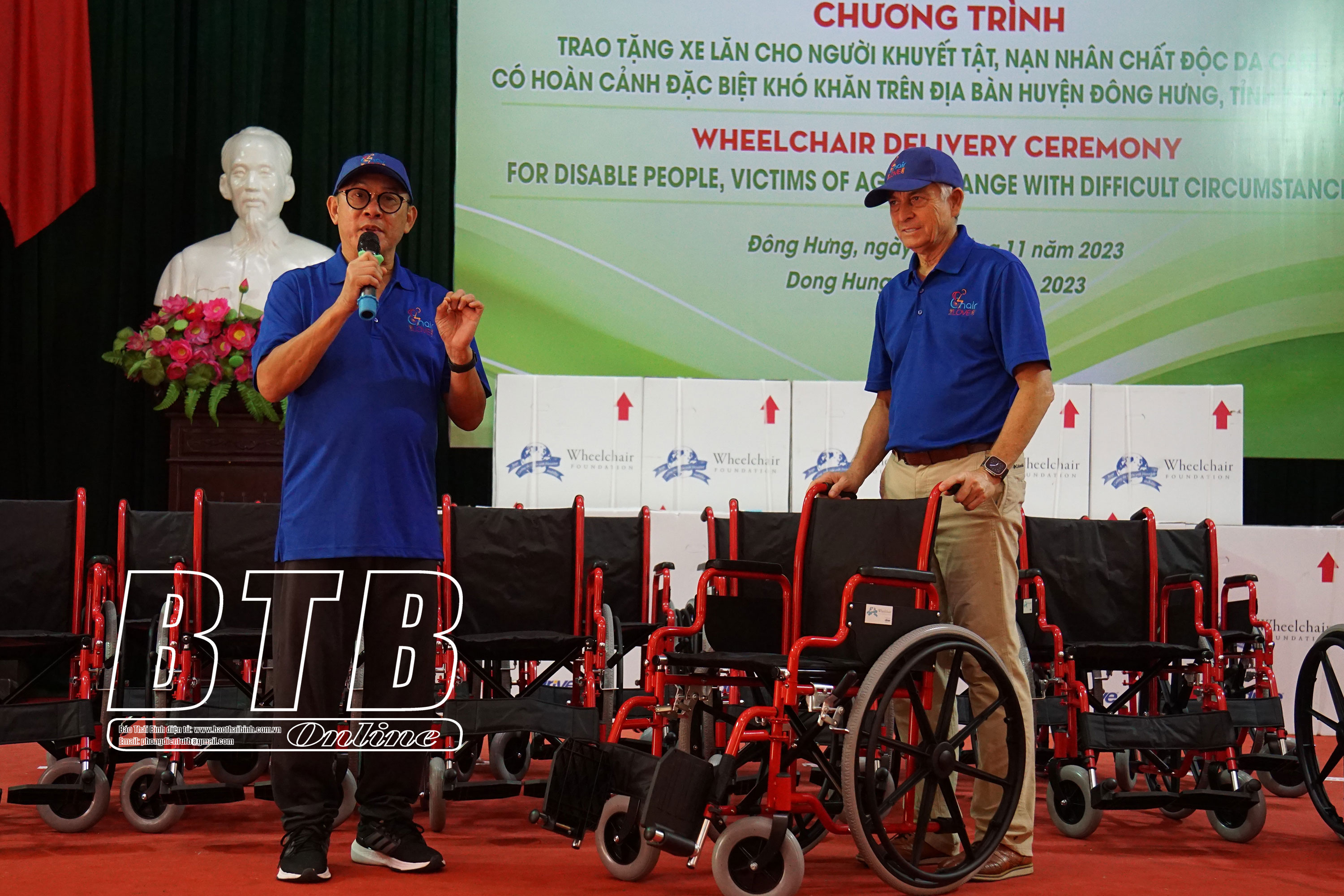 40 chiếc xe lăn, trị giá mỗi chiếc 8,5 triệu đồng, do Quỹ xe lăn quốc tế tài trợ và nhiều phần quà ý nghĩa đã được trao tận tay những người khuyết tật. Đại diện Quỹ xe lăn quốc tế đã hướng dẫn chi tiết cách sử dụng xe lăn bảo đảm an toàn, thuận tiện. Đây là món quà ý nghĩa, giúp người khuyết tật có thể tự di chuyển dễ dàng, vơi đi khó khăn trong cuộc sống, giảm bớt gánh nặng về chăm sóc đối với người thân, gia đình của họ. Từ sự hỗ trợ kịp thời này cũng mang đến nguồn động viên, khích lệ người khuyết tật, nạn nhân chất độc da cam có thêm nghị lực vươn lên, từng bước hòa nhập cộng đồng.