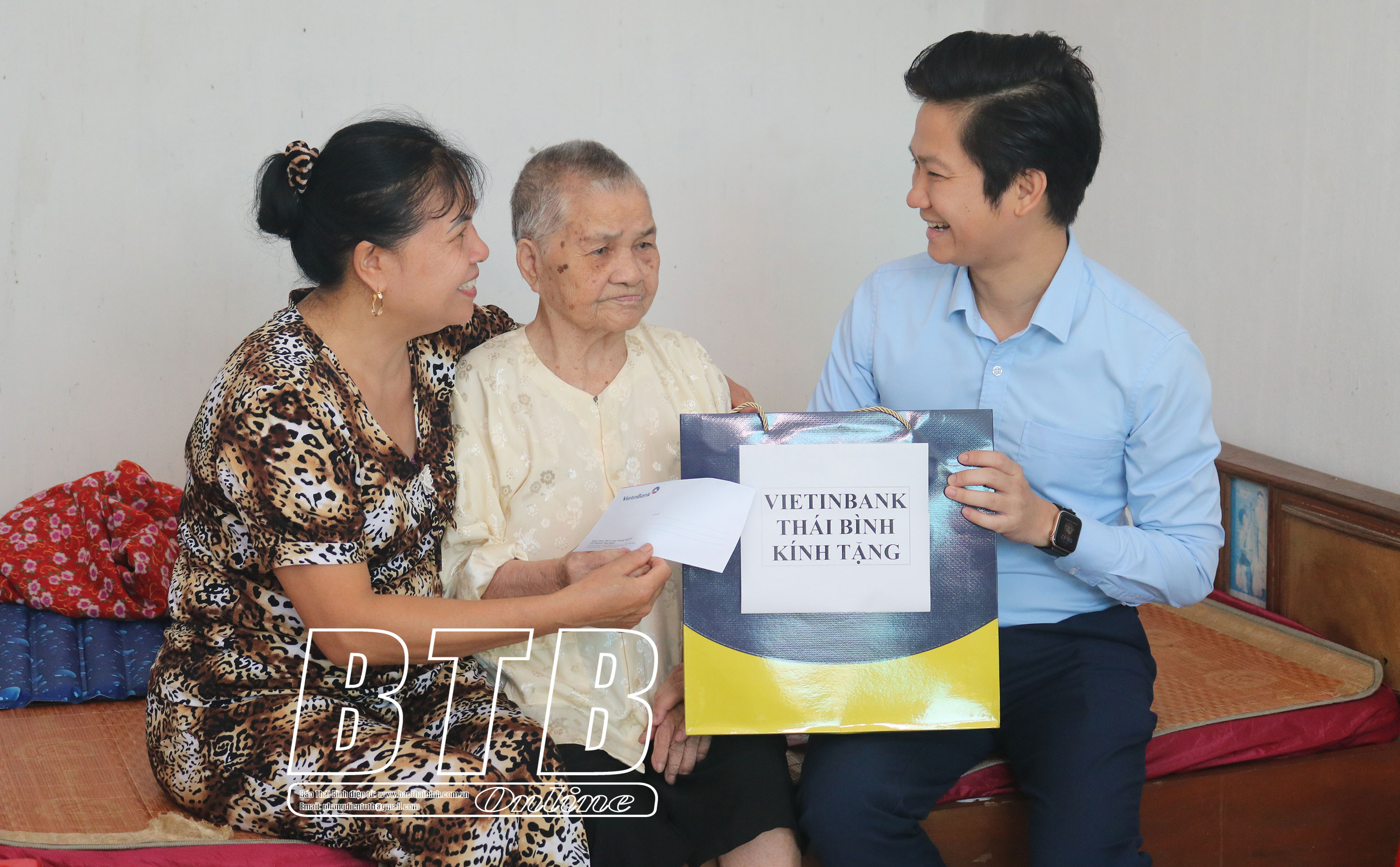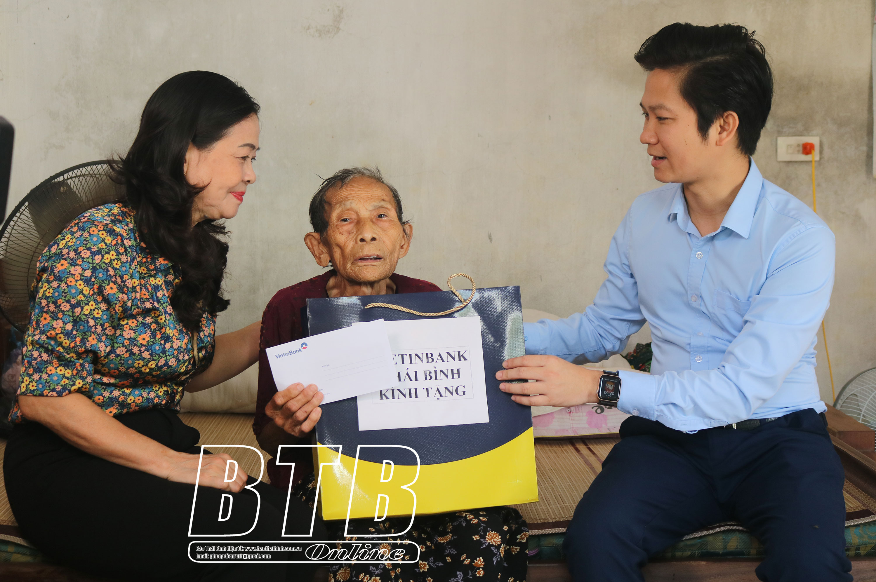 100 suất quà trị giá mỗi suất 500.000 đồng từ nguồn hỗ trợ của Vietinbank ủy thác cho Ban Đại diện Hội NCT tỉnh và Vietinbank chi nhánh tỉnh Thái Bình đã được trao đến hội viên NCT của các xã: Tây Lương, Đông Hoàng (Tiền Hải), Đồng Thanh, Vũ Đoài (Vũ Thư) và Đông Dương (Đông Hưng). Đoàn đã đến thăm và trao quà cho các cụ: Vũ Thị Vui, thôn 10; Phạm Thị Ngắn, thôn 5 và Vũ Thị Hồng, thôn 11 (xã Vũ Đoài), đây đều là những hội viên NCT có hoàn cảnh khó khăn, sống neo đơn không nơi nương tựa, cần sự giúp đỡ của cấp ủy, chính quyền và các nhà hảo tâm.