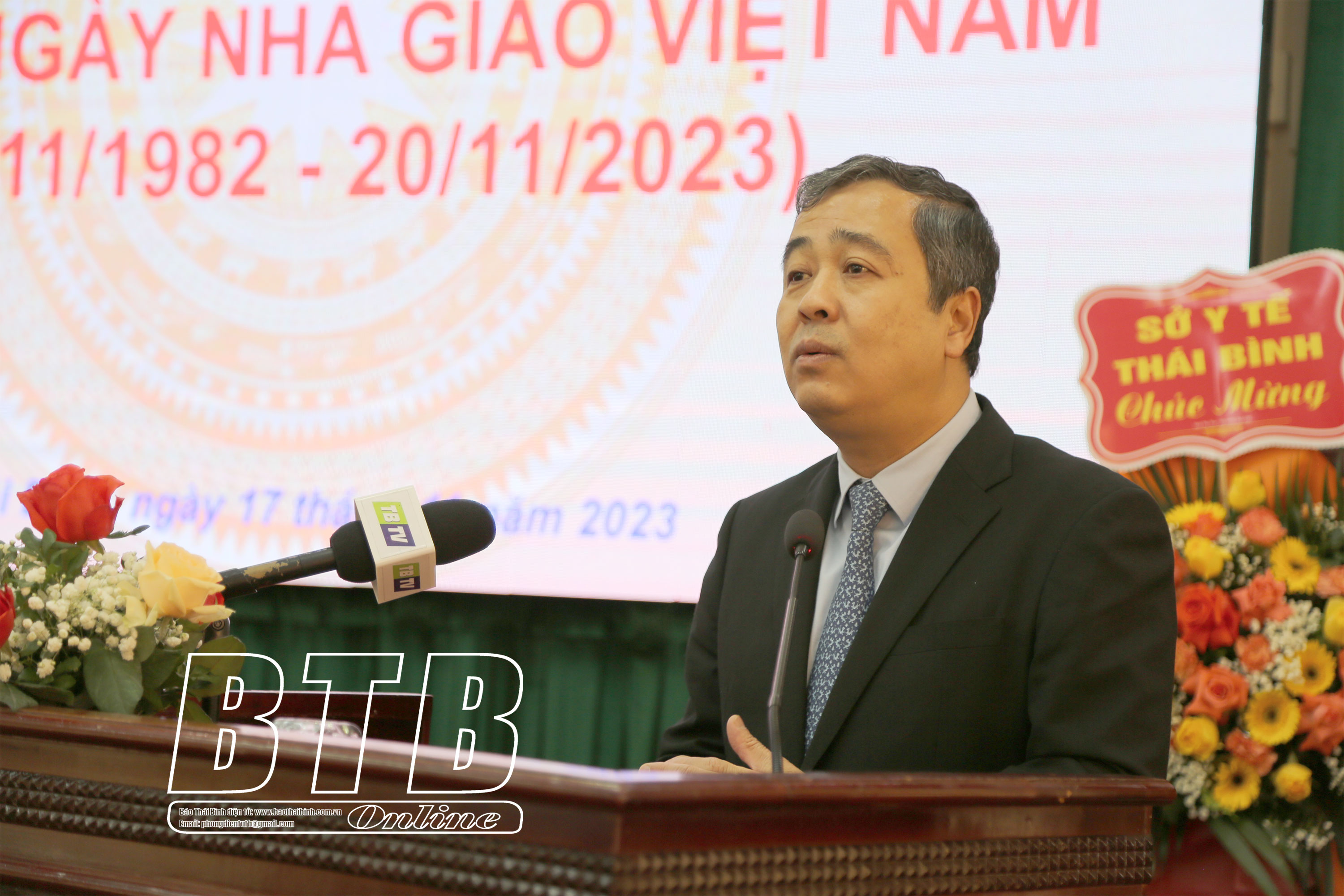 Tặng hoa chúc mừng cán bộ, công chức, viên chức Sở Giáo dục và Đào tạo, đồng chí Bí thư Tỉnh ủy gửi lời chúc tốt đẹp nhất đến thế hệ các thầy, cô giáo cùng tập thể đội ngũ cán bộ, nhà giáo, người lao động trong toàn ngành, chúc các thầy, cô giáo luôn là tấm gương sáng để các em học sinh noi theo. Đồng chí ghi nhận và đánh giá cao kết quả ngành giáo dục đạt được trong năm học vừa qua trong đó chất lượng giáo dục toàn diện được nâng cao, duy trì chất lượng giáo dục đại trà, chất lượng giáo dục mũi nhọn có bước phát triển.