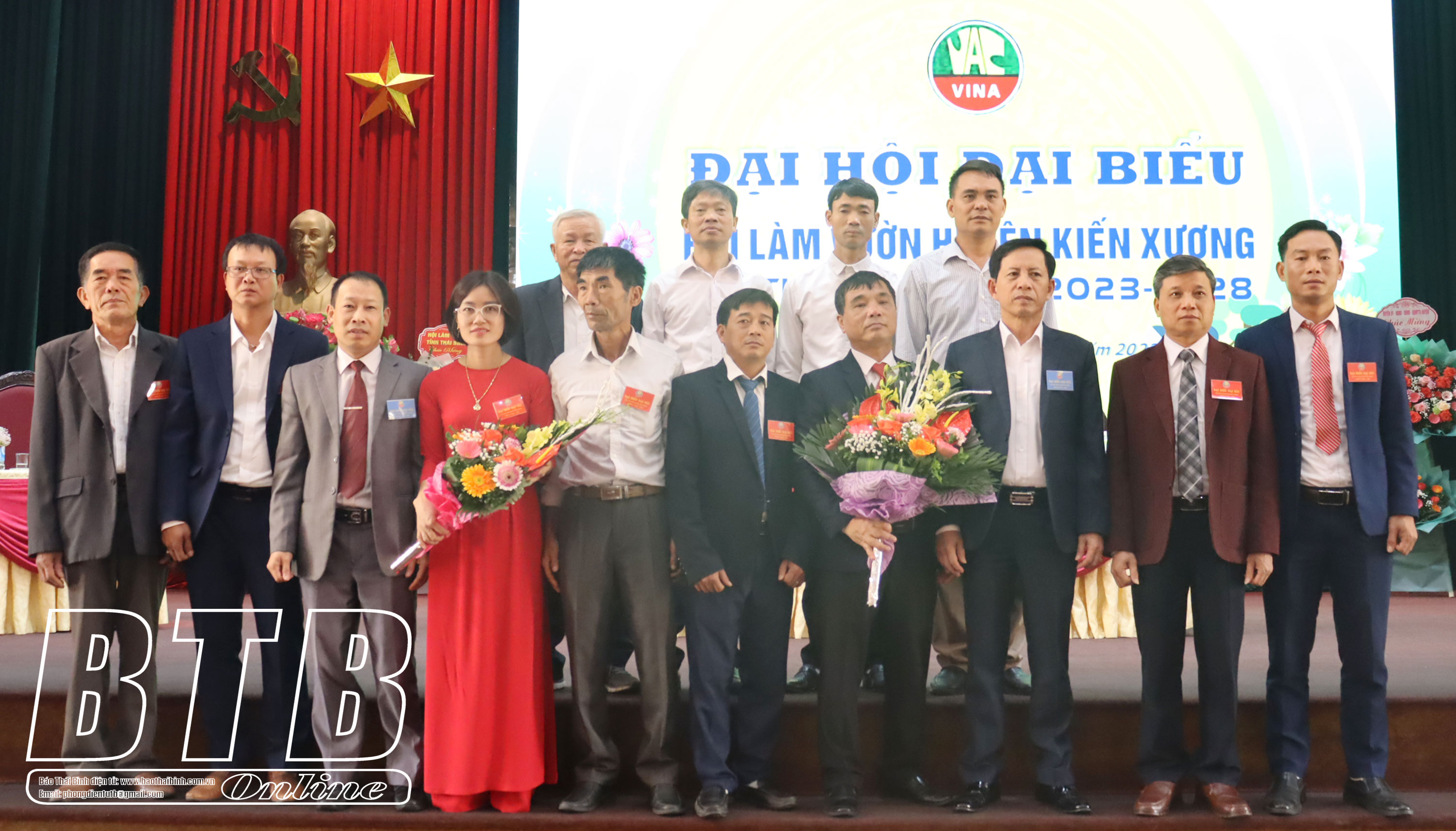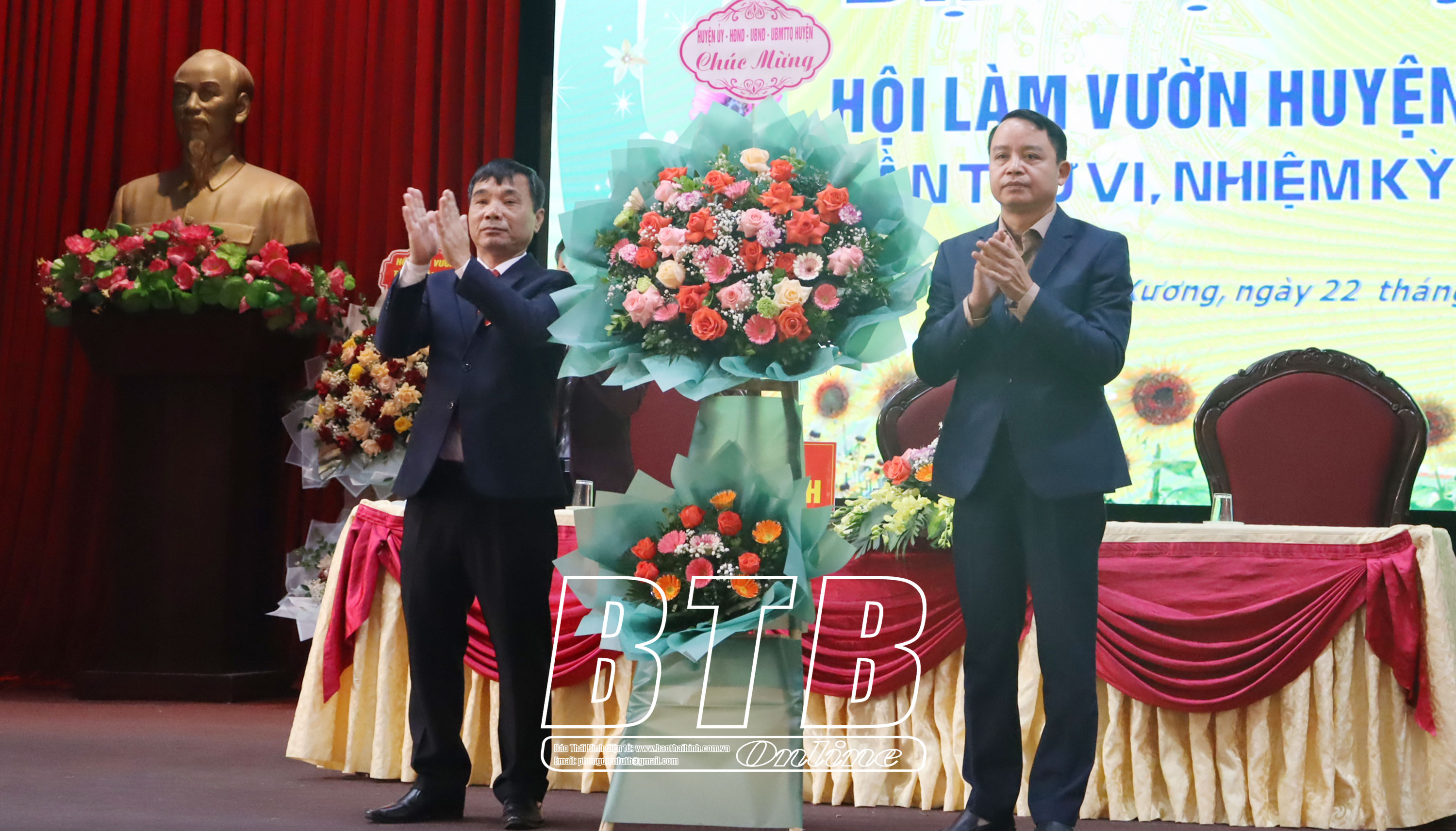 Lãnh đạo Hội Làm vườn tỉnh, lãnh đạo huyện Kiến Xương tặng hoa chúc mừng Ban Chấp hành khóa mới tại đại hội.