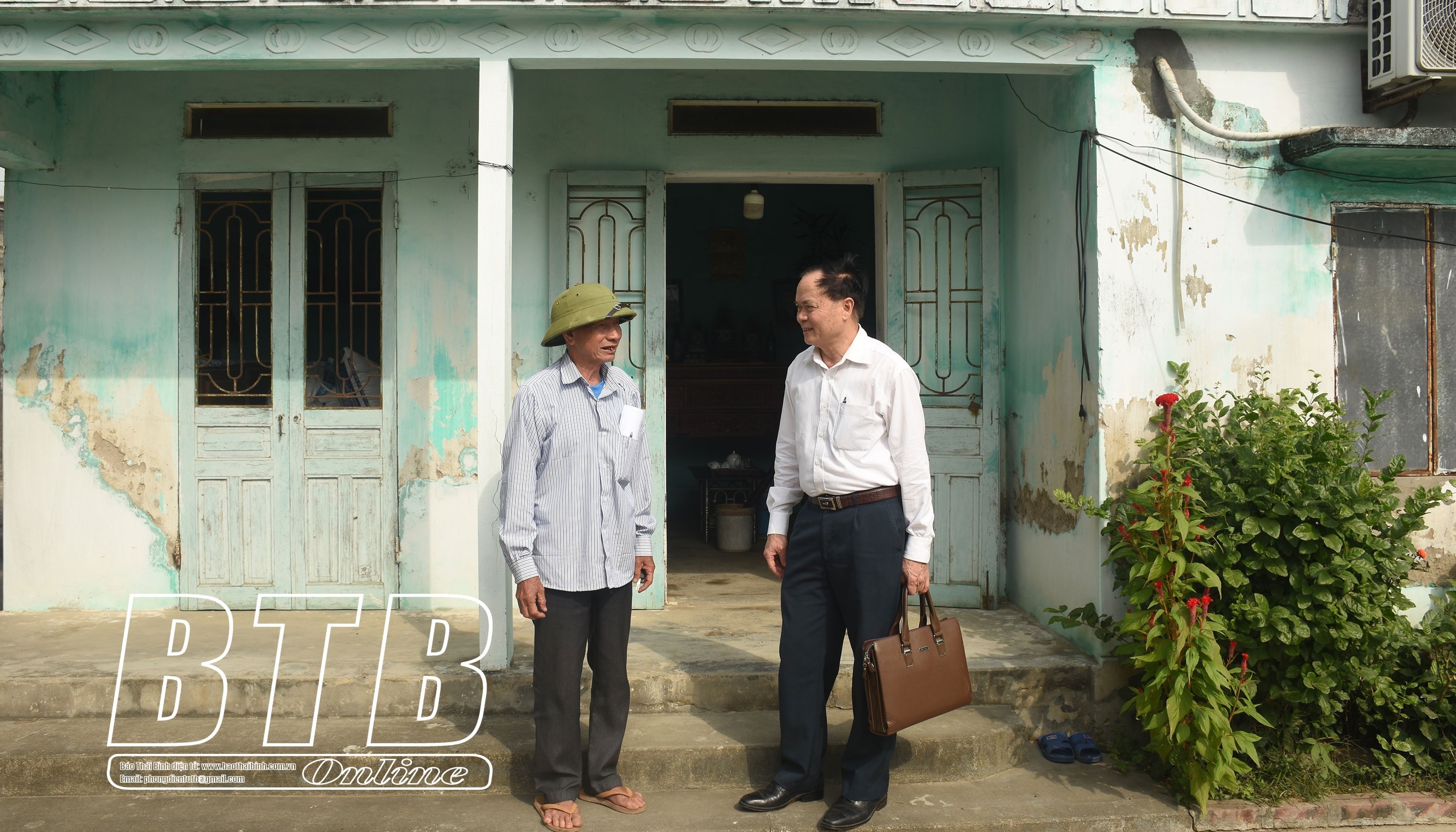 Kiểm tra thực tế tại một hộ nghèo của xã Quỳnh Hồng.