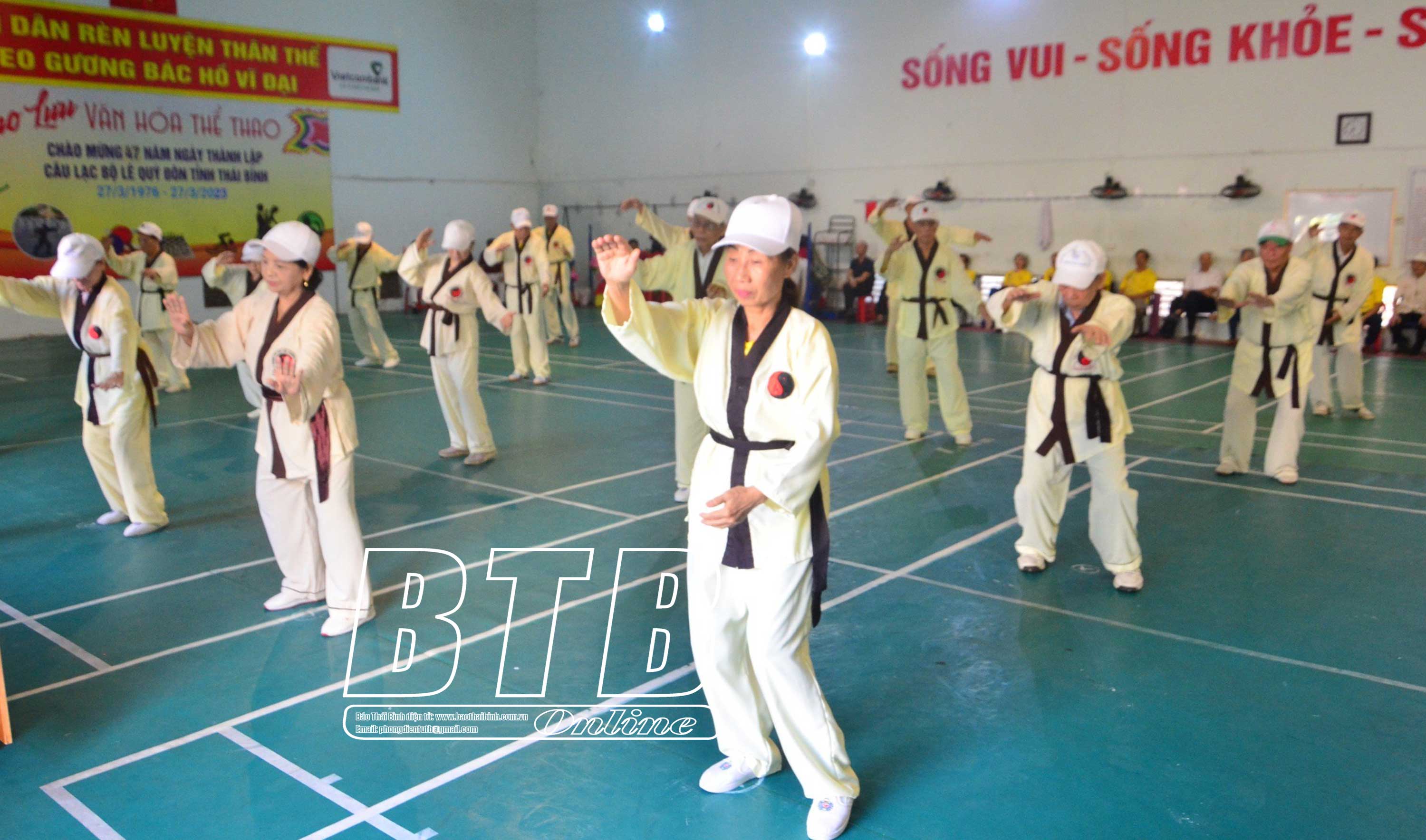 Hội viên Câu lạc bộ Lê Quý Đôn đồng diễn Thái cực trường sinh đạo.