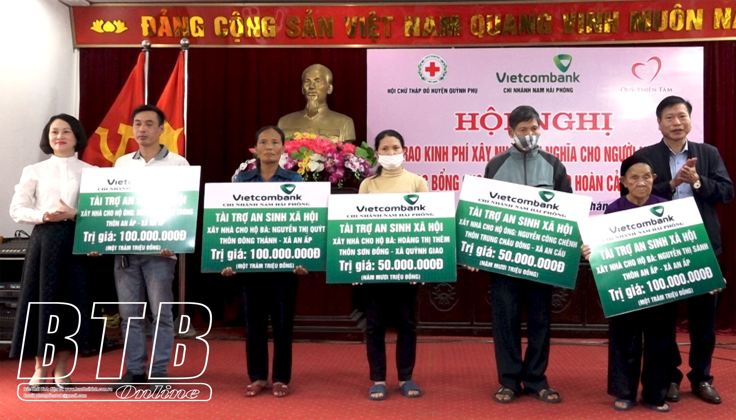 19 học sinh nghèo vượt khó, học giỏi trong năm học 2022-2023 được quỹ Thiện Tâm trao học bổng với kinh phí 2,1 triệu đồng/học sinh. 5 hộ gia đình thuộc diện hộ nghèo được Ngân hàng Thương mại cổ phần Ngoại thương Việt Nam và Ngân hàng Thương mại cổ phần Ngoại thương Việt Nam chi nhánh Nam Hải Phòng hỗ trợ tổng kinh phí 400 triệu đồng để xây mới và nâng cấp, sửa chữa nhà ở.