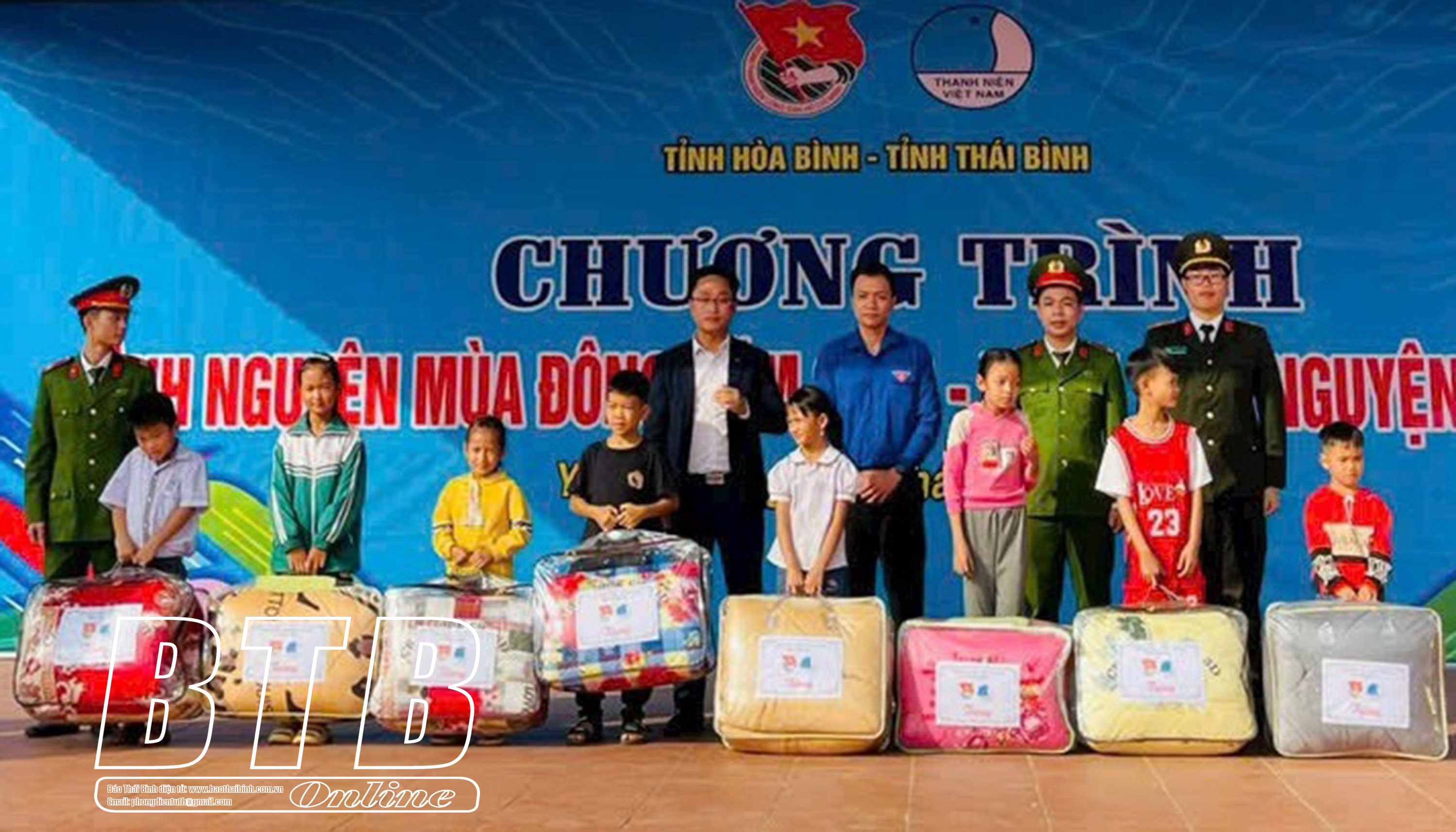 Tuổi trẻ các đơn vị tặng chăn ấm cho trẻ em huyện Yên Thủy.