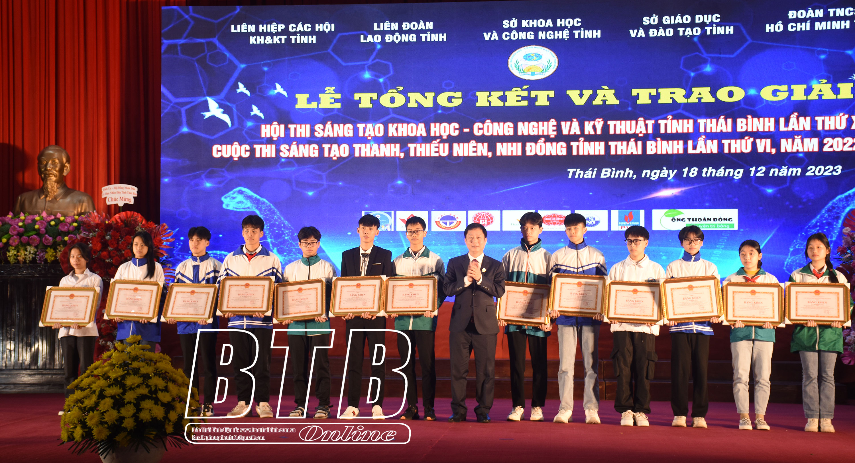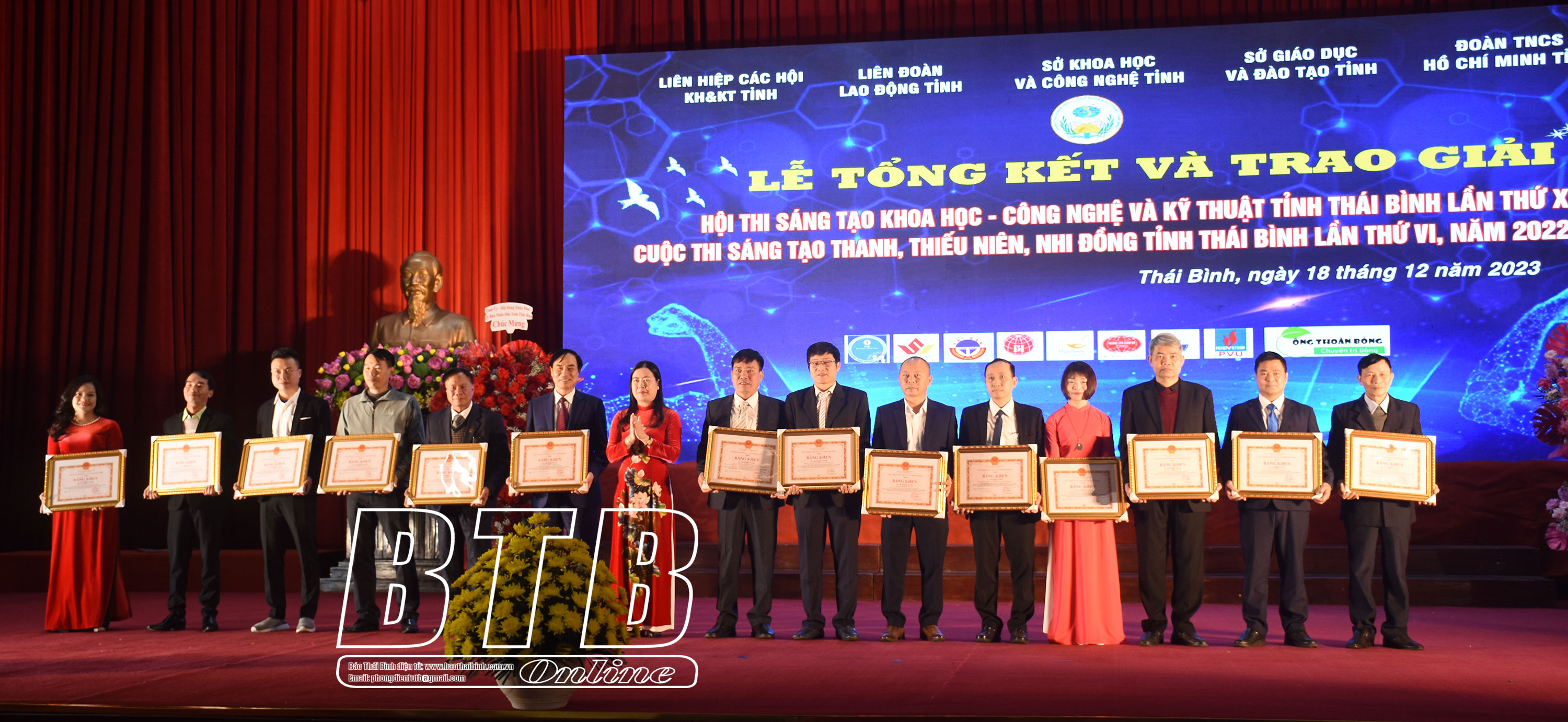 Sáng ngày 18/12, Liên hiệp các Hội Khoa học và Kỹ thuật tỉnh phối hợp với Liên đoàn Lao động tỉnh, Sở Khoa học và Công nghệ, Sở Giáo dục và Đào tạo, Tỉnh đoàn tổ chức lễ tổng kết và trao giải hội thi sáng tạo khoa học, công nghệ và kỹ thuật tỉnh lần thứ X, cuộc thi sáng tạo thanh thiếu niên, nhi đồng tỉnh lần thứ VI, năm 2022 - 2023.