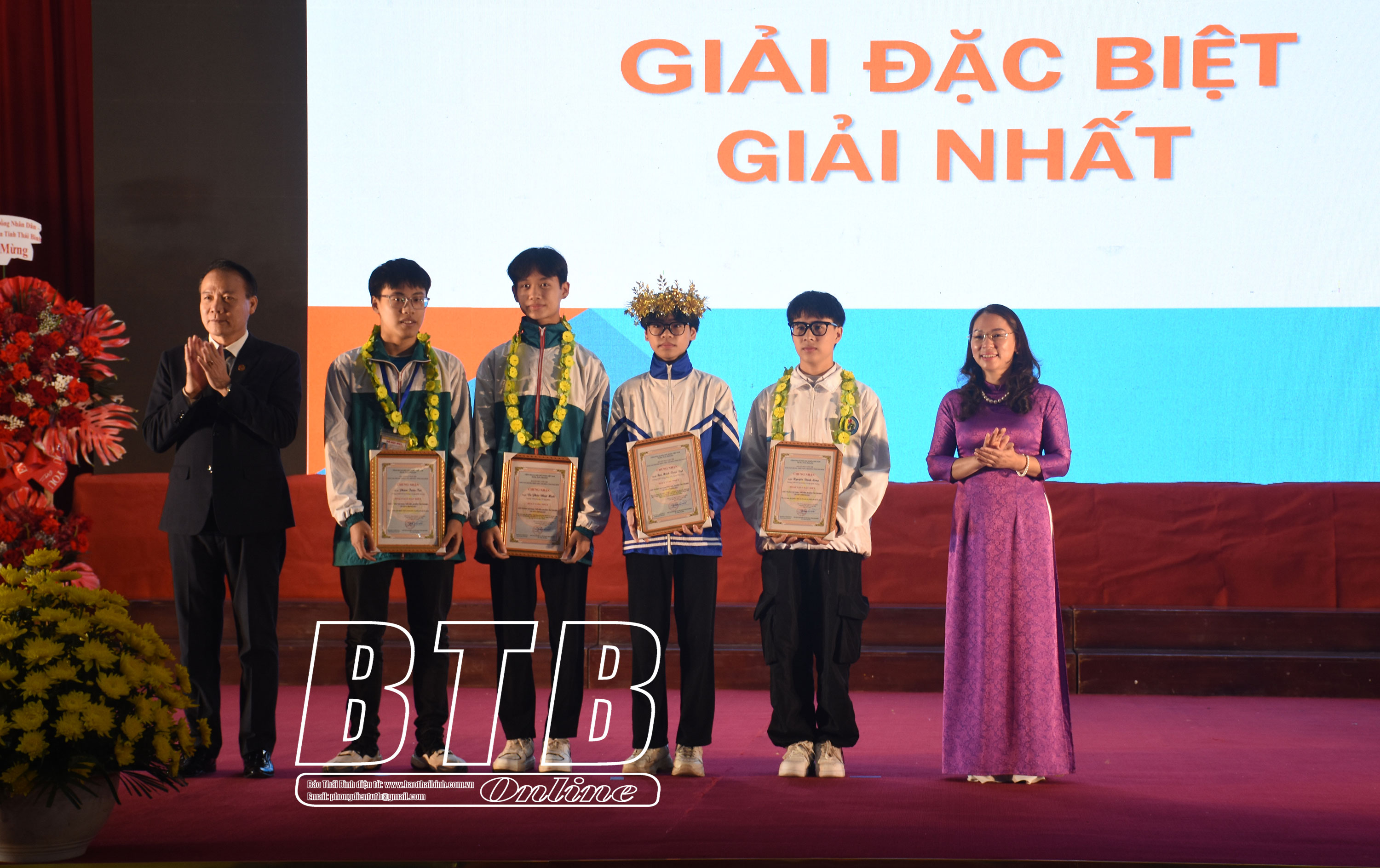 Lãnh đạo Quỹ Hỗ trợ sáng tạo kỹ thuật Việt Nam- Vifotec và Liên hiệp các Hội Khoa học và Kỹ thuật tỉnh trao giải nhất và giải đặc biệt cho tác giả tham gia cuộc thi. Lãnh đạo Hội Nông dân tỉnh và Tỉnh đoàn trao giải nhì cho các tác giả tham gia cuộc thi. Đồng chí Vũ Ngọc Trì, Tỉnh ủy viên, Phó Chủ tịch HĐND tỉnh và lãnh đạo Ban Dân vận Tỉnh ủy trao giải ba cho các tác giả tham gia cuộc thi. Lãnh đạo Ban Văn hóa Xã hội, HĐND tỉnh và Sở Giáo dục và Đào tạo trao trao bằng chứng nhận cho các tác giả và nhóm tác giả đoạt giải khuyến khích tại cuộc thi.