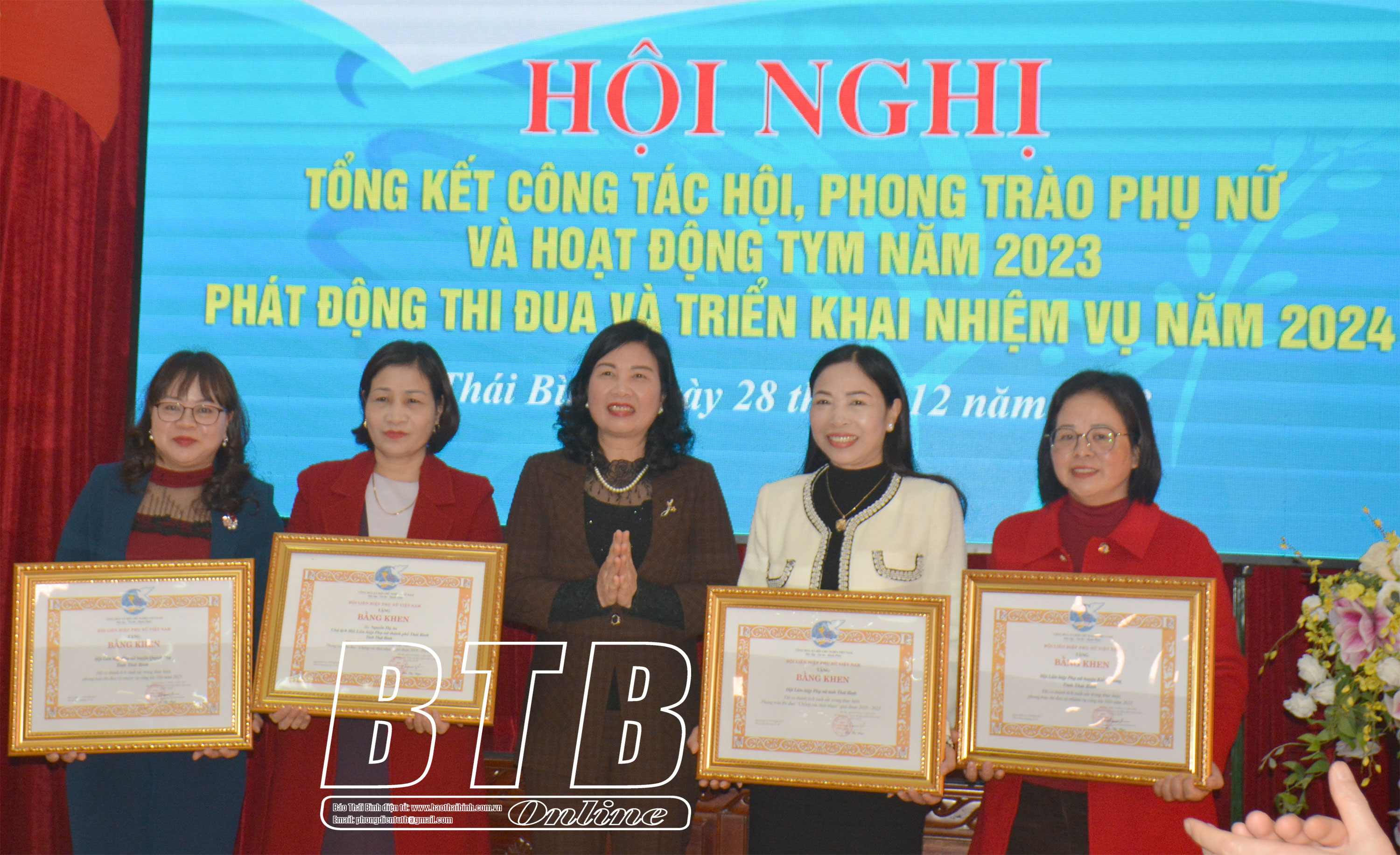 Tại hội nghị, các tập thể, cá nhân có thành tích xuất sắc được Trung ương Hội LHPN Việt Nam, Chủ tịch UBND tỉnh, Hội LHPN tỉnh, các đơn vị tặng bằng khen, giấy khen; hội LHPN các huyện, thành phố và các đơn vị đã ký giao ước thi đua năm 2024.