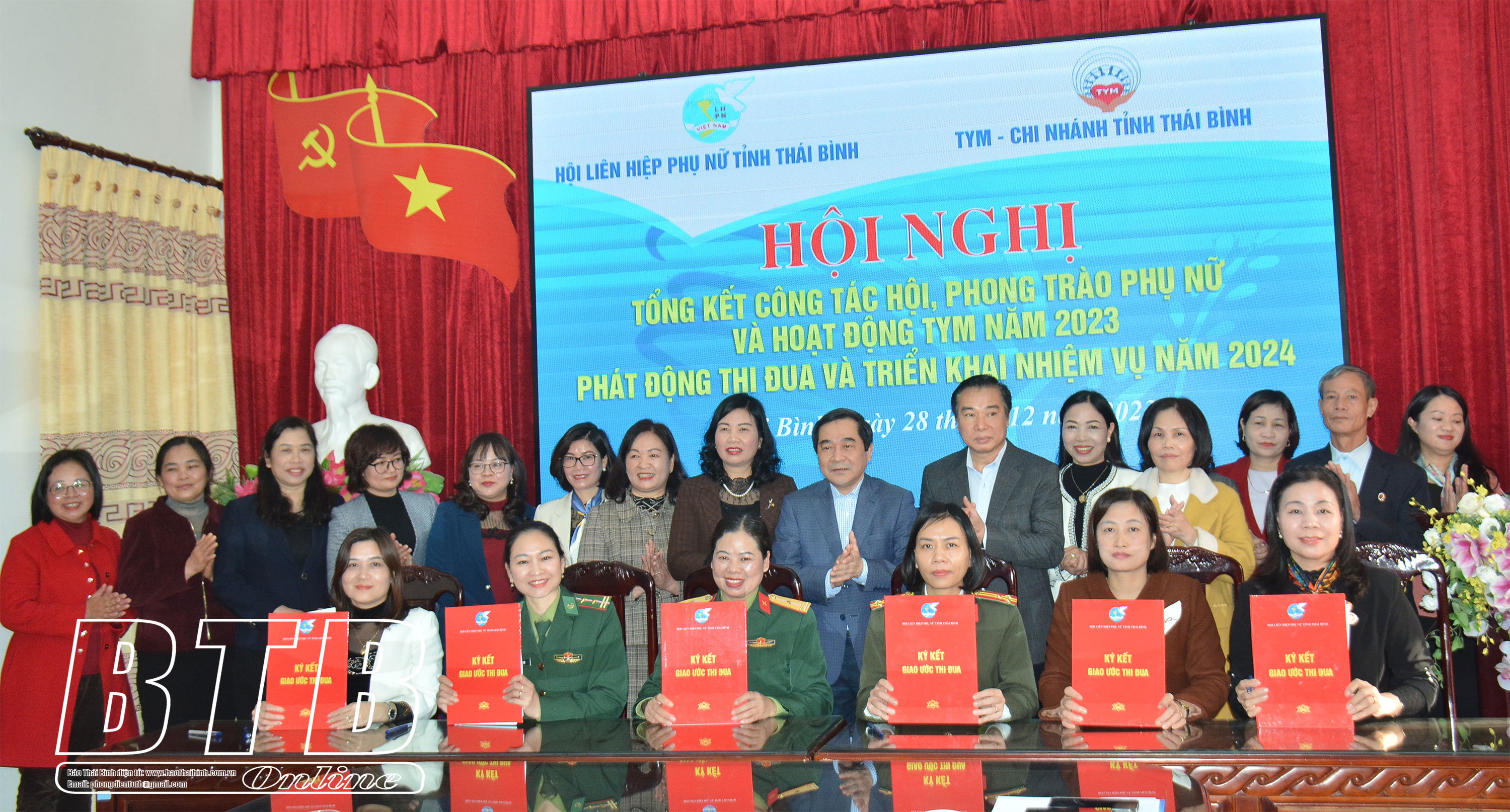 Nhân dịp này, Hội LHPN tỉnh phối hợp với Tổ chức Tài chính vi mô TNHH Một thành viên Tình thương (TYM) - Chi nhánh Thái Bình tổng kết hoạt động TYM năm 2023. Trong năm qua, TYM - Chi nhánh Thái Bình đã hỗ trợ cho 2.175 lượt vay, tăng 326 lượt so với năm 2022, đã giải ngân trên 71 tỷ đồng; 100% thành viên vay vốn tham gia tiết kiệm với số dư tiết kiệm trên 22 tỷ đồng.