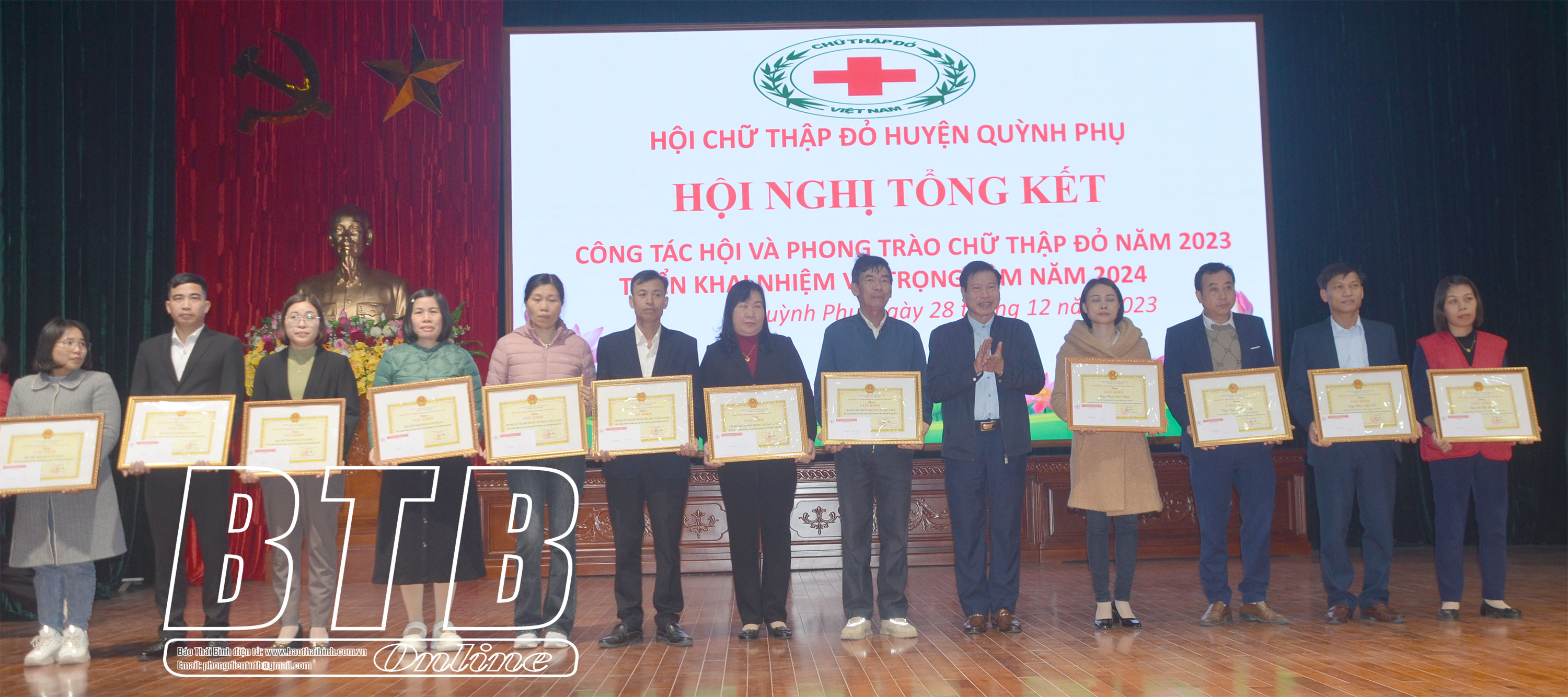 Nhân dịp này, 18 tập thể, 39 cá nhân có nhiều đóng góp trong công tác hội và phong trào chữ thập đỏ năm 2023 được Hội Chữ thập đỏ tỉnh và UBND huyện Quỳnh Phụ tuyên dương, khen thưởng.