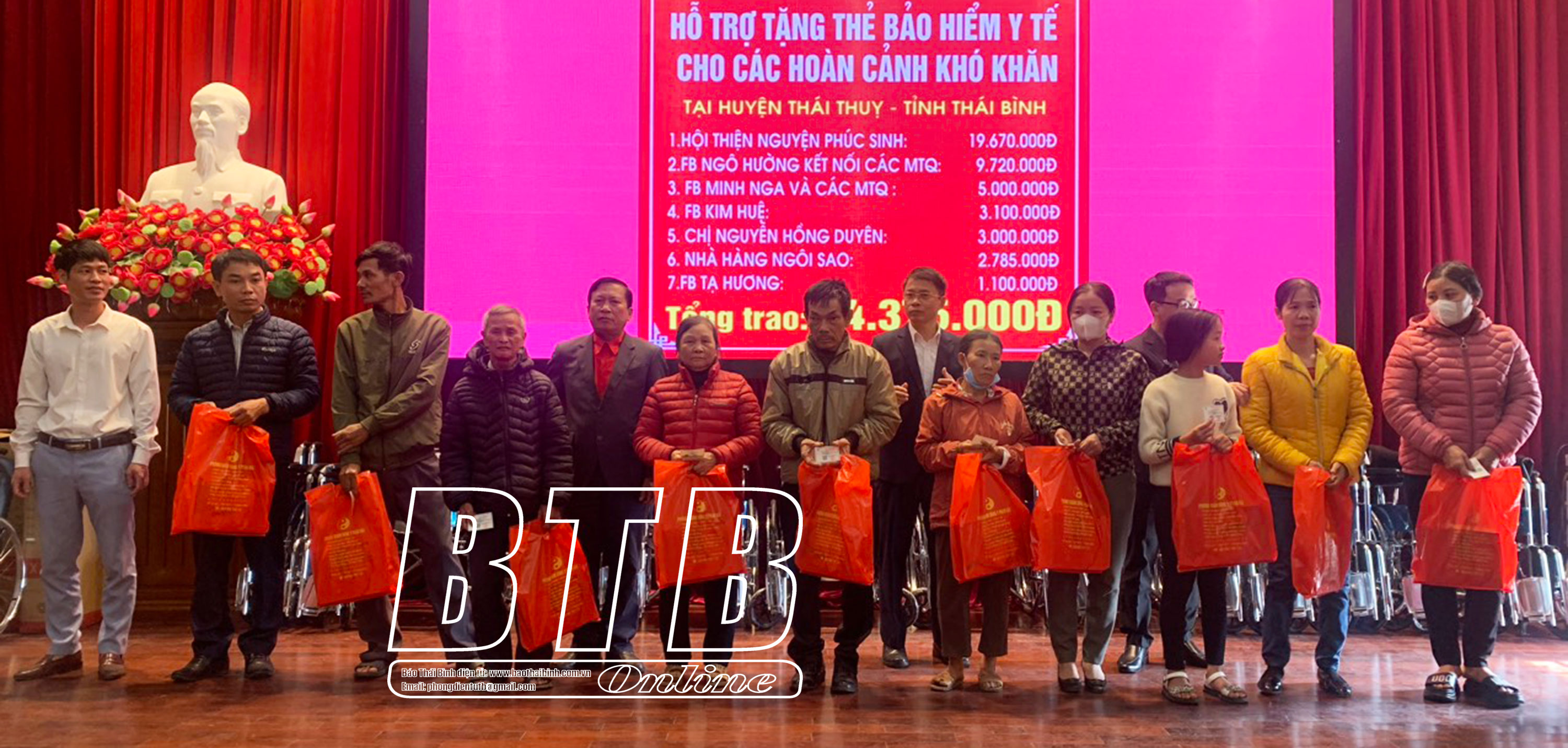 Lãnh đạo Huyện ủy Thái Thụy tặng thẻ bảo hiểm y tế cho hộ có hoàn cảnh khó khăn.