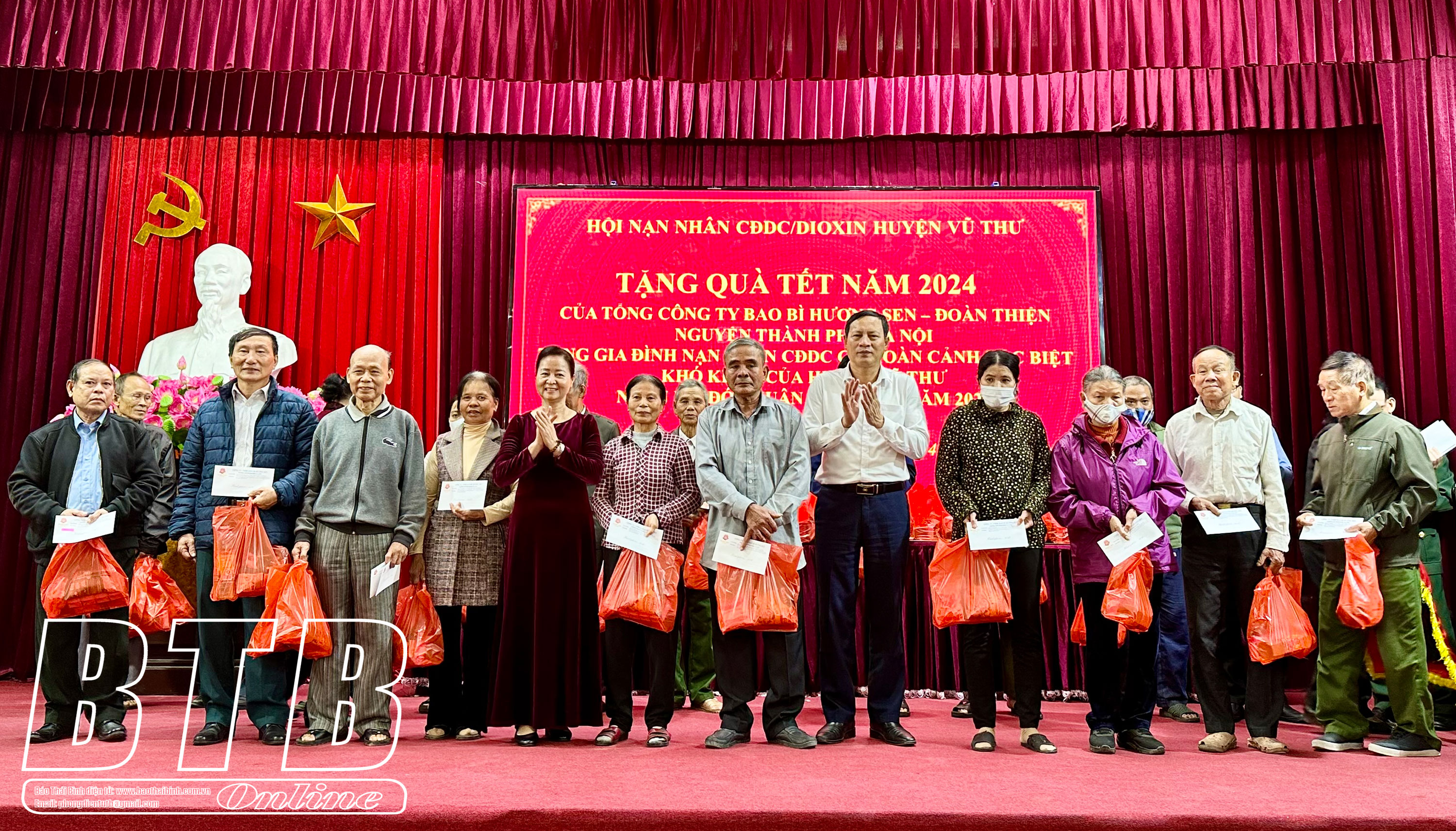 155 suất quà, mỗi suất trị giá 400.000 đồng đã được trao cho nạn nhân chất độc da cam có hoàn cảnh đặc biệt khó khăn 30 xã, thị trấn của huyện Vũ Thư. Những suất quà do Hội Nạn nhân Chất độc da cam/Điôxin huyện vận động Công ty TNHH Bao bì Hương Sen và đoàn thiện nguyện Thành phố Hà Nội tài trợ.