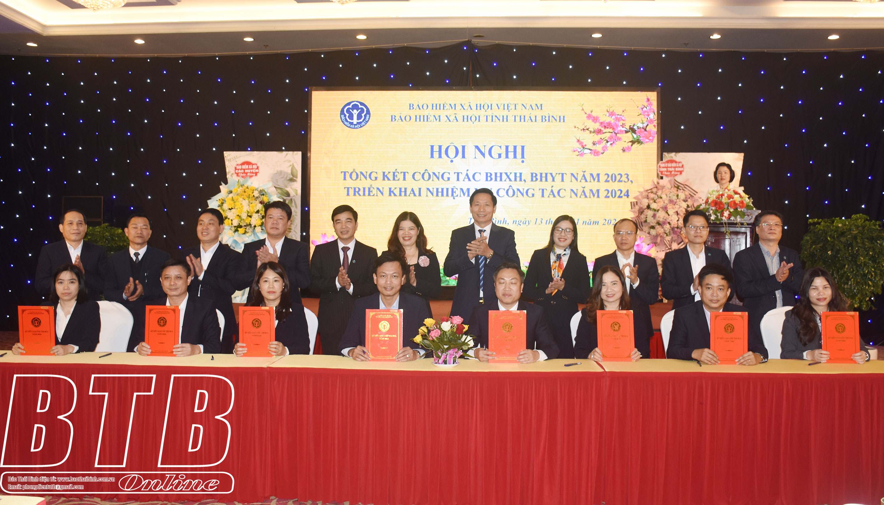 Tại hội nghị tổng kết, các phòng nghiệp vụ thuộc BHXH tỉnh và BHXH các huyện đã ký giao ước thi đua năm 2024.