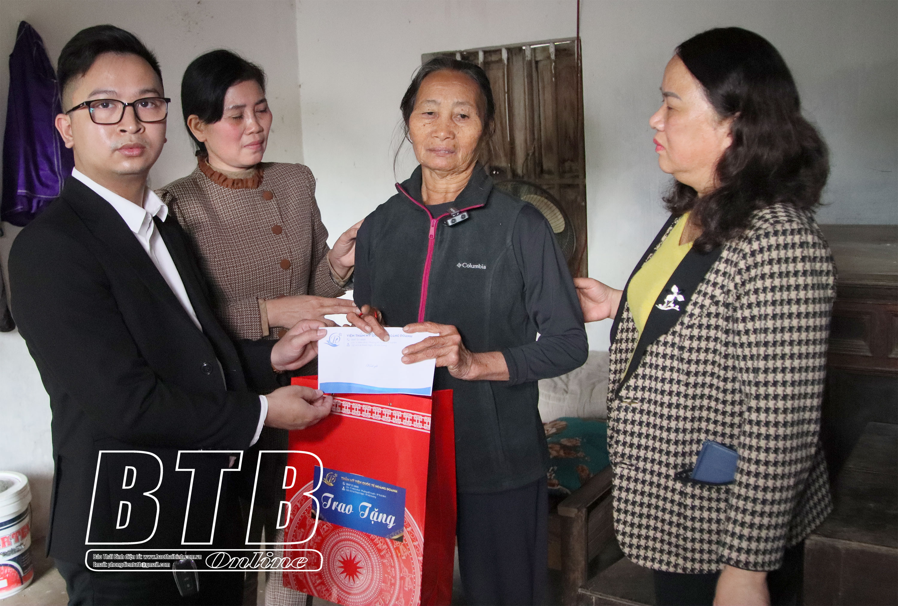 Đoàn đến thăm, trao quà cho bà Nguyễn Thị Soi, thôn Diệc, xã Tân Hòa (Hưng Hà).