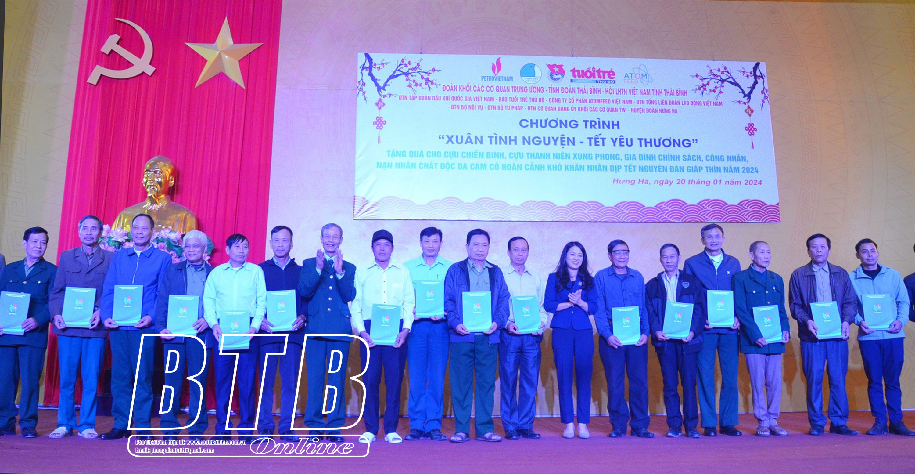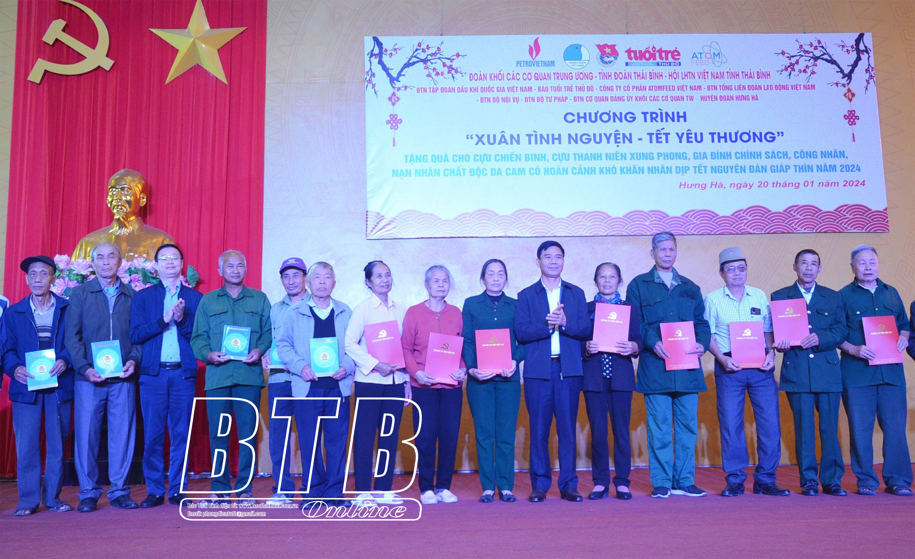 Lãnh đạo huyện Hưng Hà trao quà cho các cựu chiến binh, nạn nhân chất độc da cam, cựu thanh niên xung phong có hoàn cảnh khó khăn.