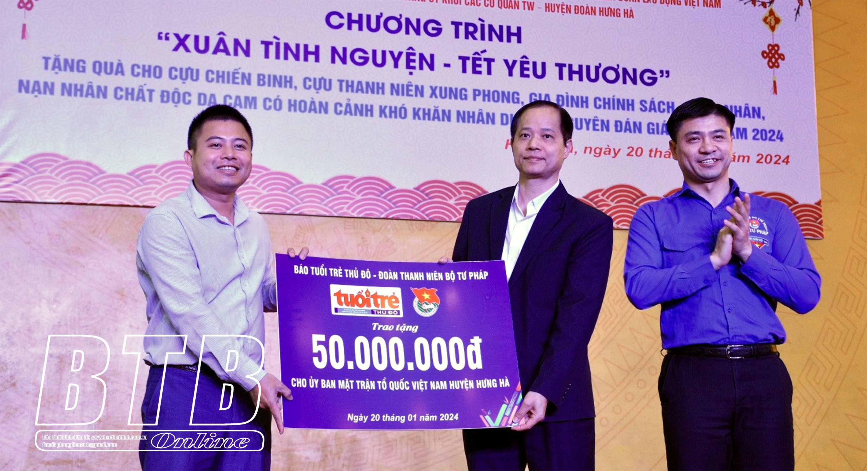 Báo Tuổi trẻ Thủ đô , Đoàn Thanh niên Bộ Tư pháp trao tặng 50 triệu đồng cho các gia đình chính sách, công nhân có hoàn cảnh khó khăn trên địa bàn huyện Hưng Hà.