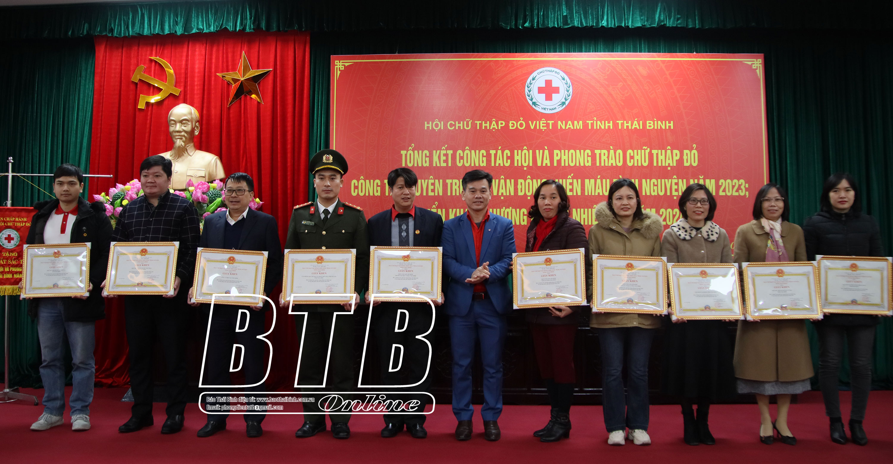 Tại hội nghị, Trung ương Hội CTĐ Việt Nam, UBND tỉnh, Ban Chỉ đạo vận động HMTN tỉnh đã tặng cờ thi đua, bằng khen, giấy khen cho 23 tập thể, 33 cá nhân có thành tích xuất sắc trong công tác hội và phong trào chữ thập đỏ, phong trào hiến máu và vận động HMTN năm 2023.