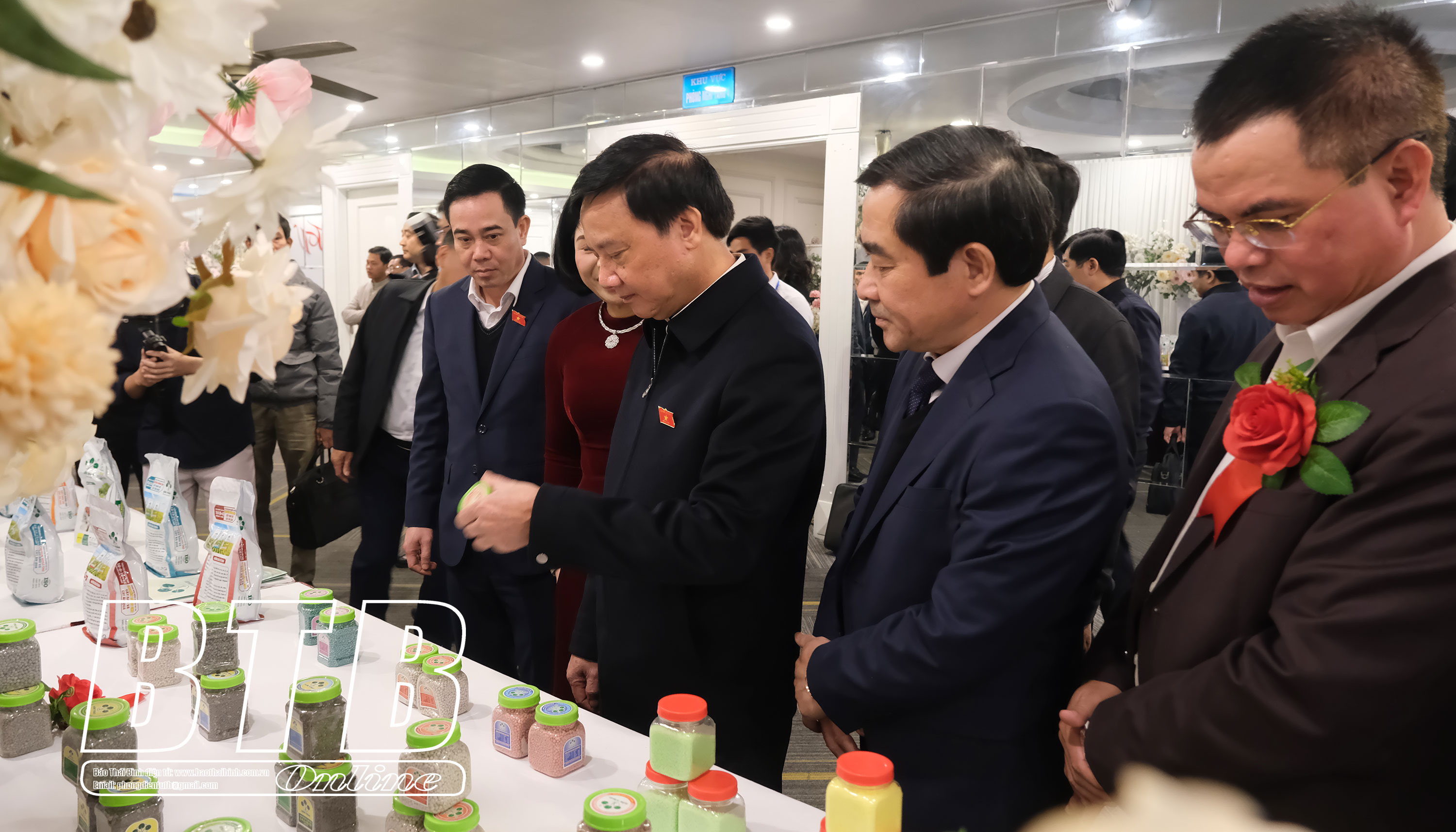 Các đồng chí lãnh đạo tham quan gian hàng trưng bày sản phẩm của Cổ phần Thương mại tổng hợp Toan Vân.