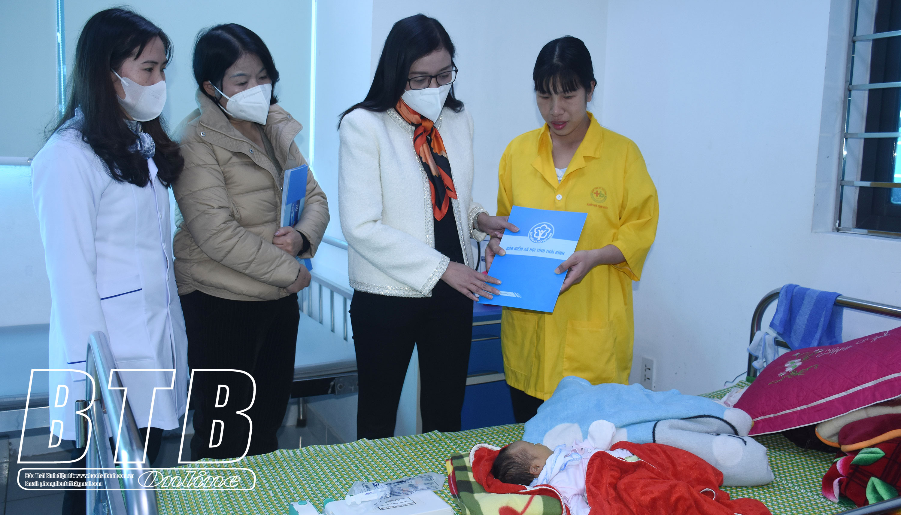 Lãnh đạo BHXH tỉnh trao quà cho bệnh nhân nhi đang điều trị tại Bệnh viện Nhi Thái Bình.