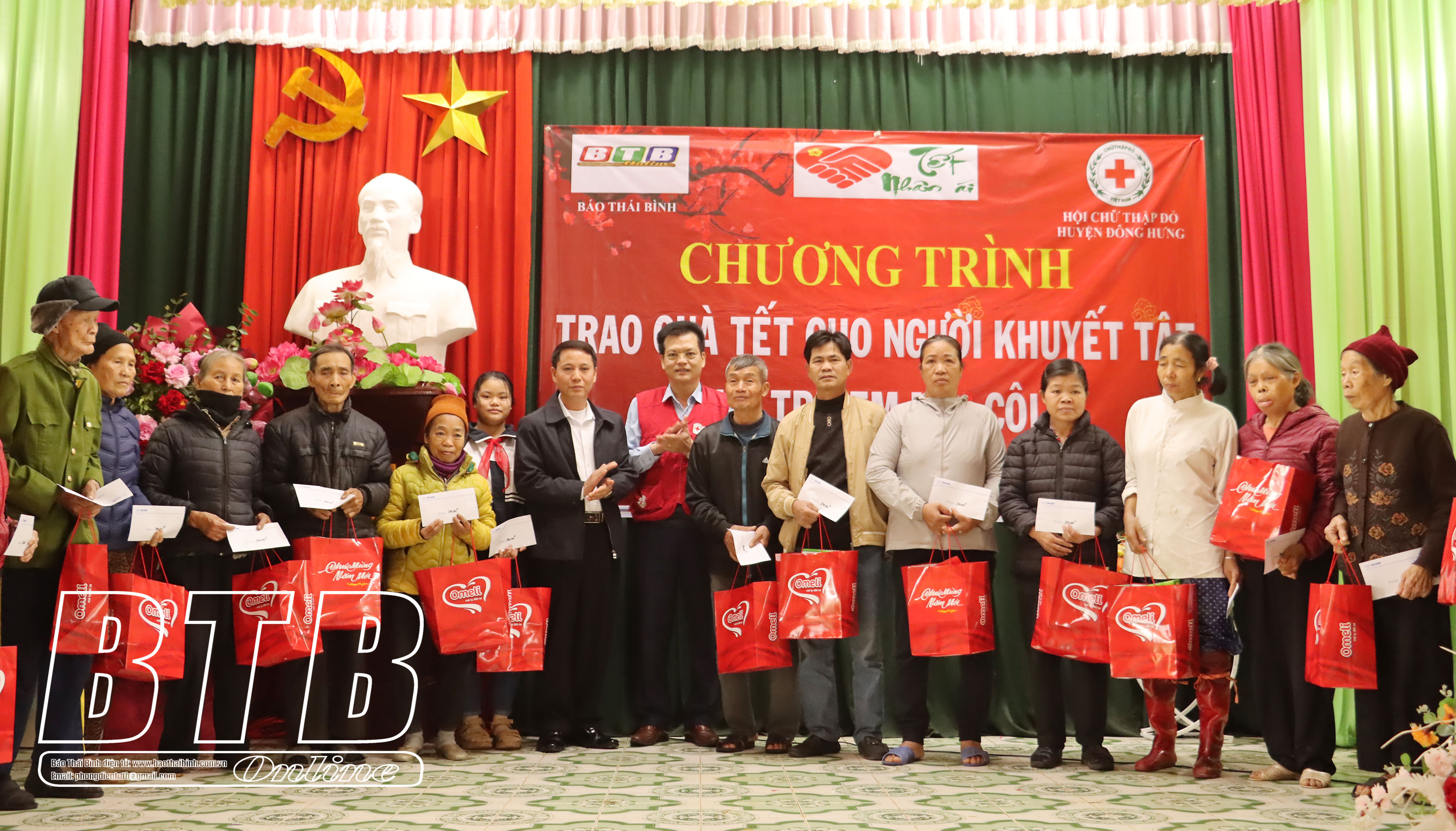 Chiều ngày 31/1, tại xã Đông Vinh (Đông Hưng), Báo Thái Bình phối hợp với Hội Chữ thập đỏ huyện Đông Hưng tổ chức trao quà tết cho người khuyết tật, trẻ em mồ côi, trẻ em có hoàn cảnh khó khăn.