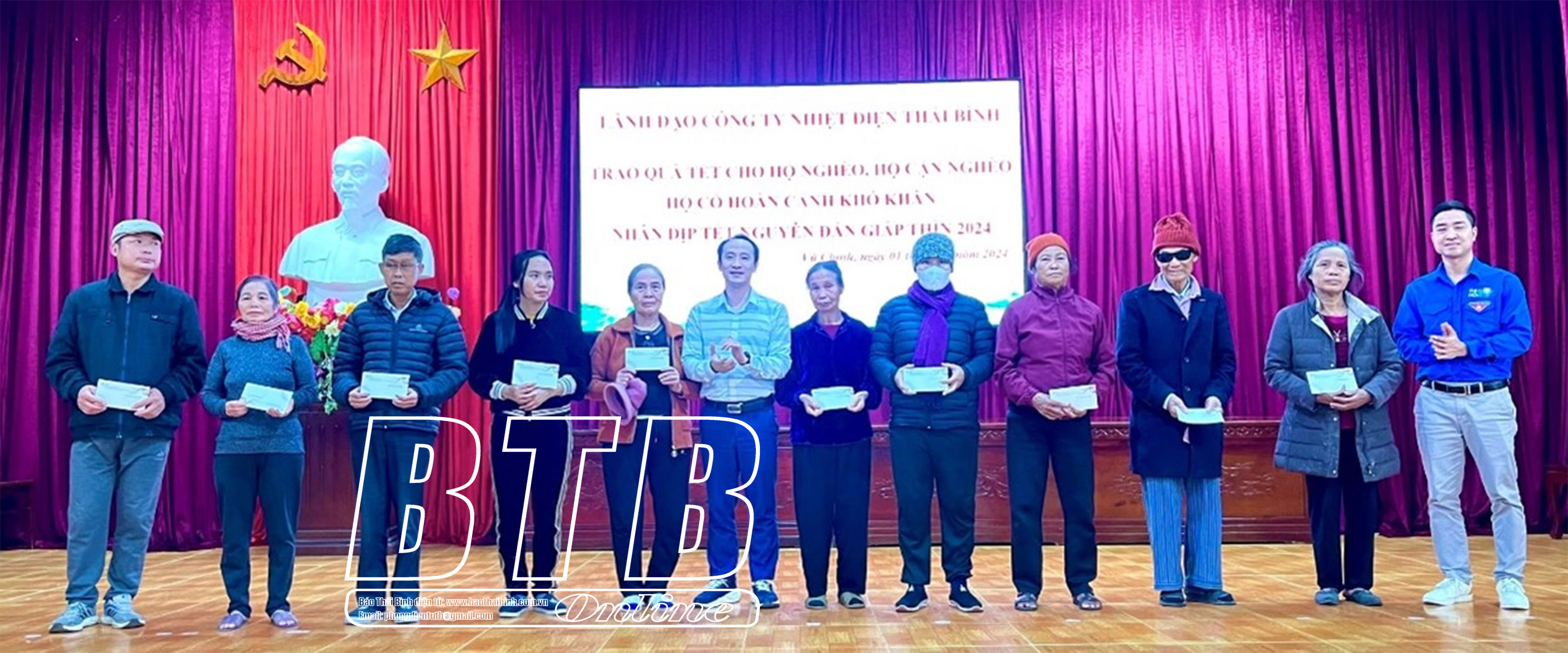 Cũng trong dịp này, Công ty Nhiệt điện Thái Bình đã hỗ trợ, tặng quà và động viên một số công nhân, lao động của đơn vị có hoàn cảnh đặc biệt khó khăn yên tâm công tác, cùng gia đình đón xuân Giáp Thìn 2024 bình an, hạnh phúc.