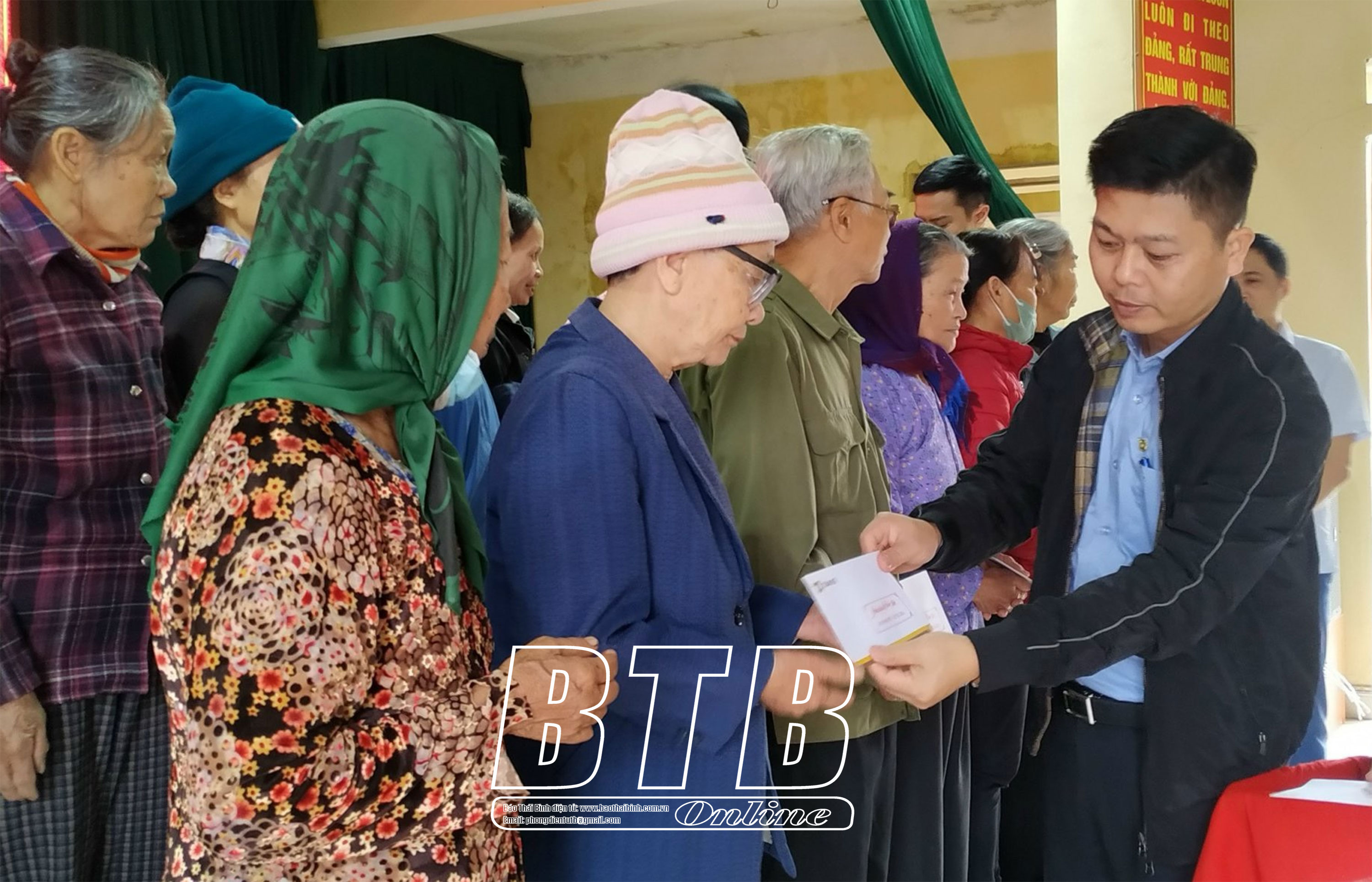 Lãnh đạo Công ty Tân Đệ trao quà tết cho các hộ nghèo xã Kim Trung (Hưng Hà).