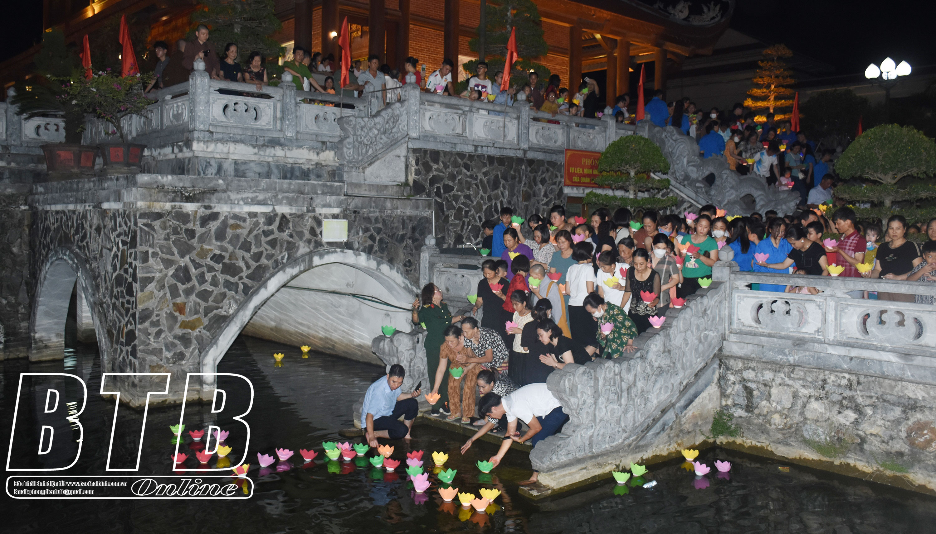 Đông đảo nhân dân thả hoa đăng tưởng niệm các anh hùng liệt sĩ tại Đền thờ Liệt sĩ tỉnh.