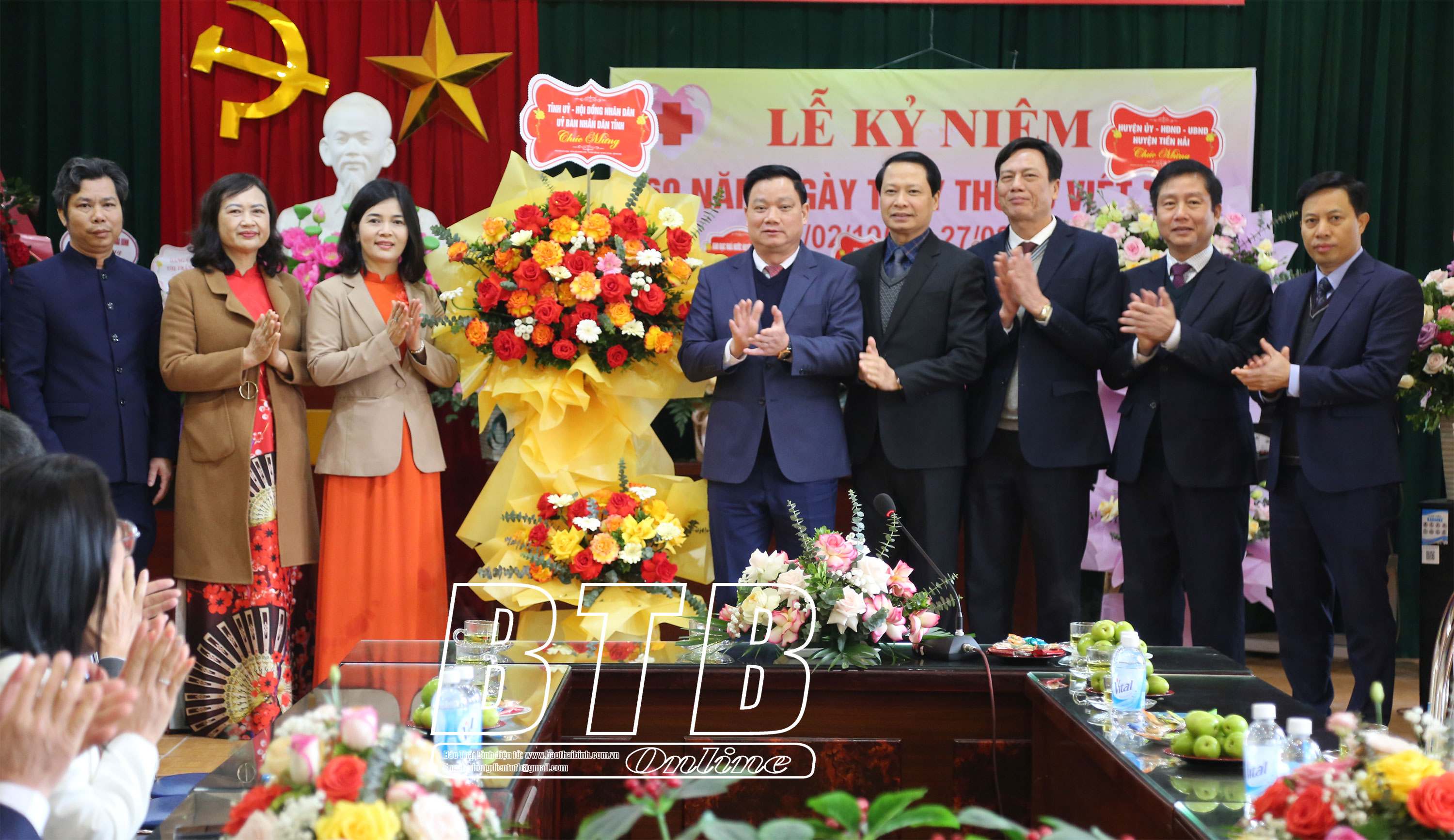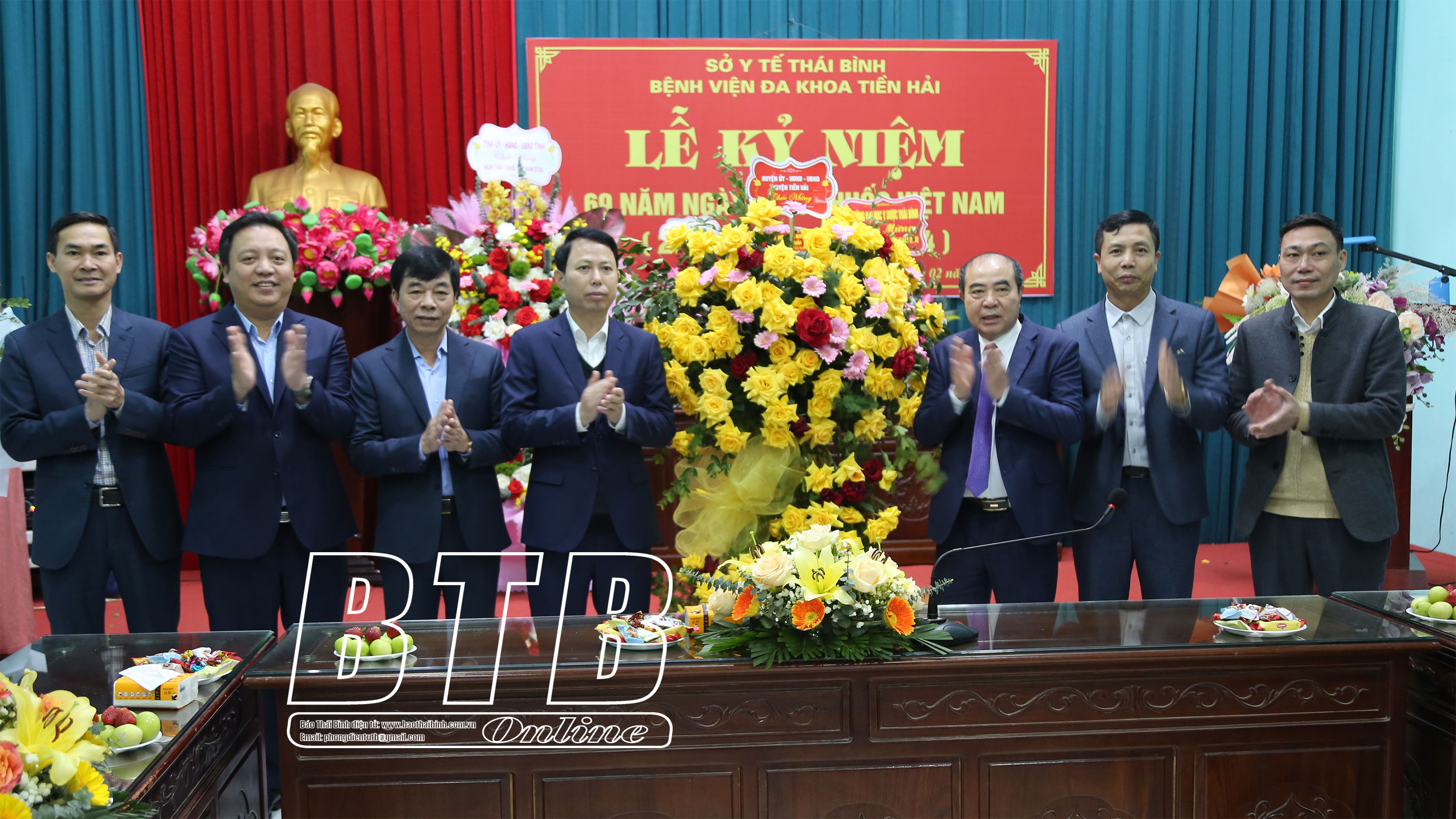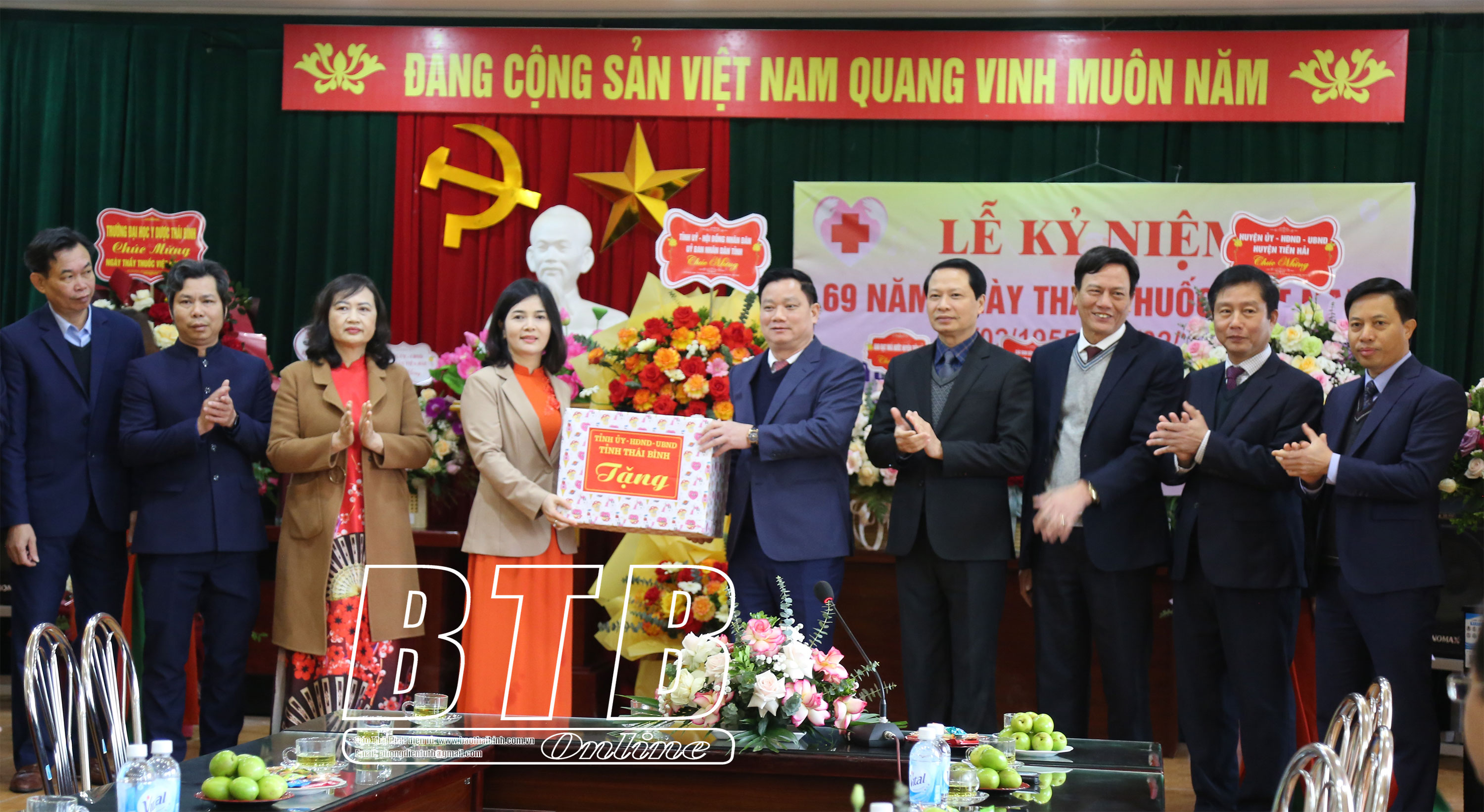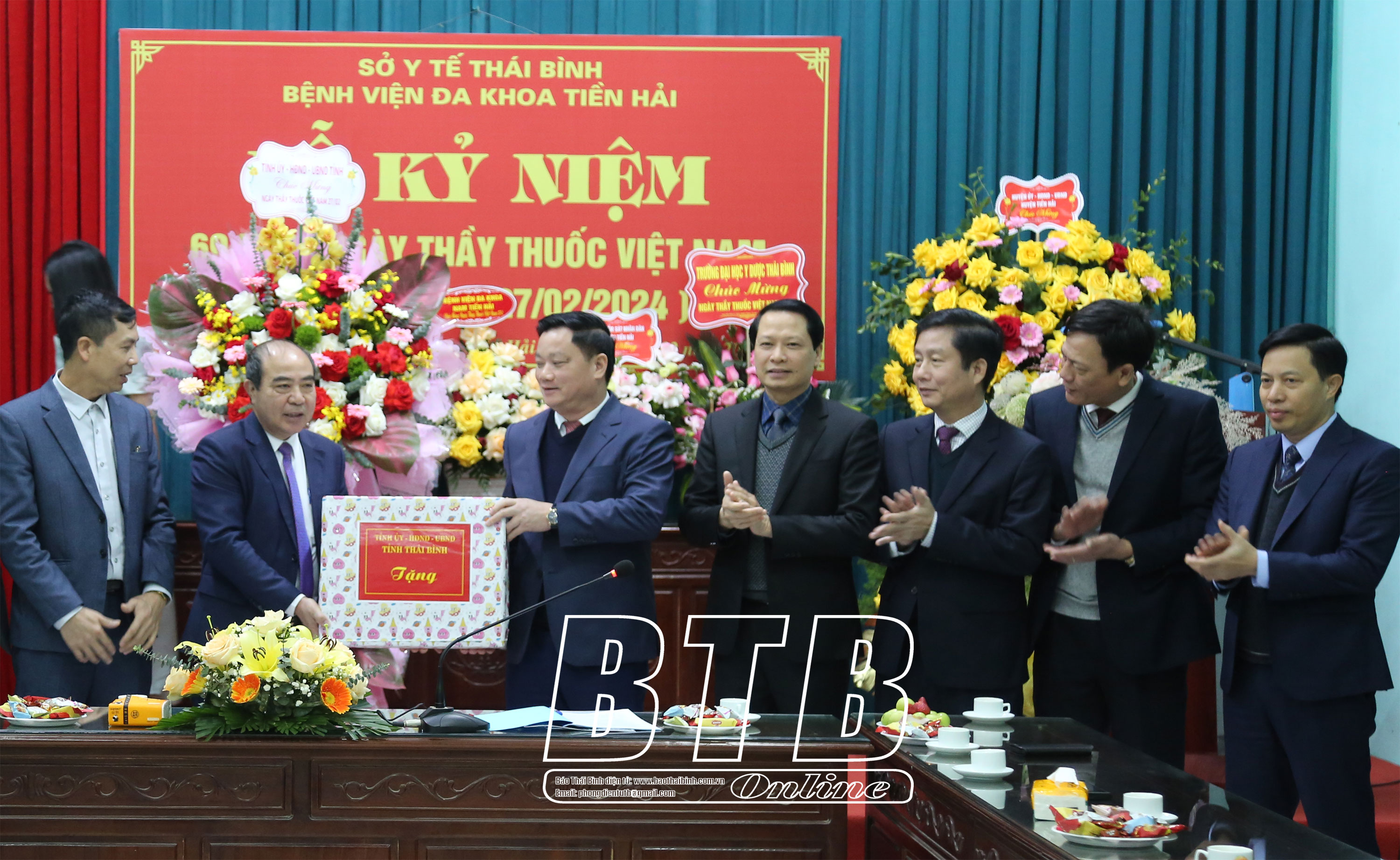 Lãnh đạo huyện Tiền Hải tặng hoa chúc mừng Bệnh viện Đa khoa huyện Tiền Hải.