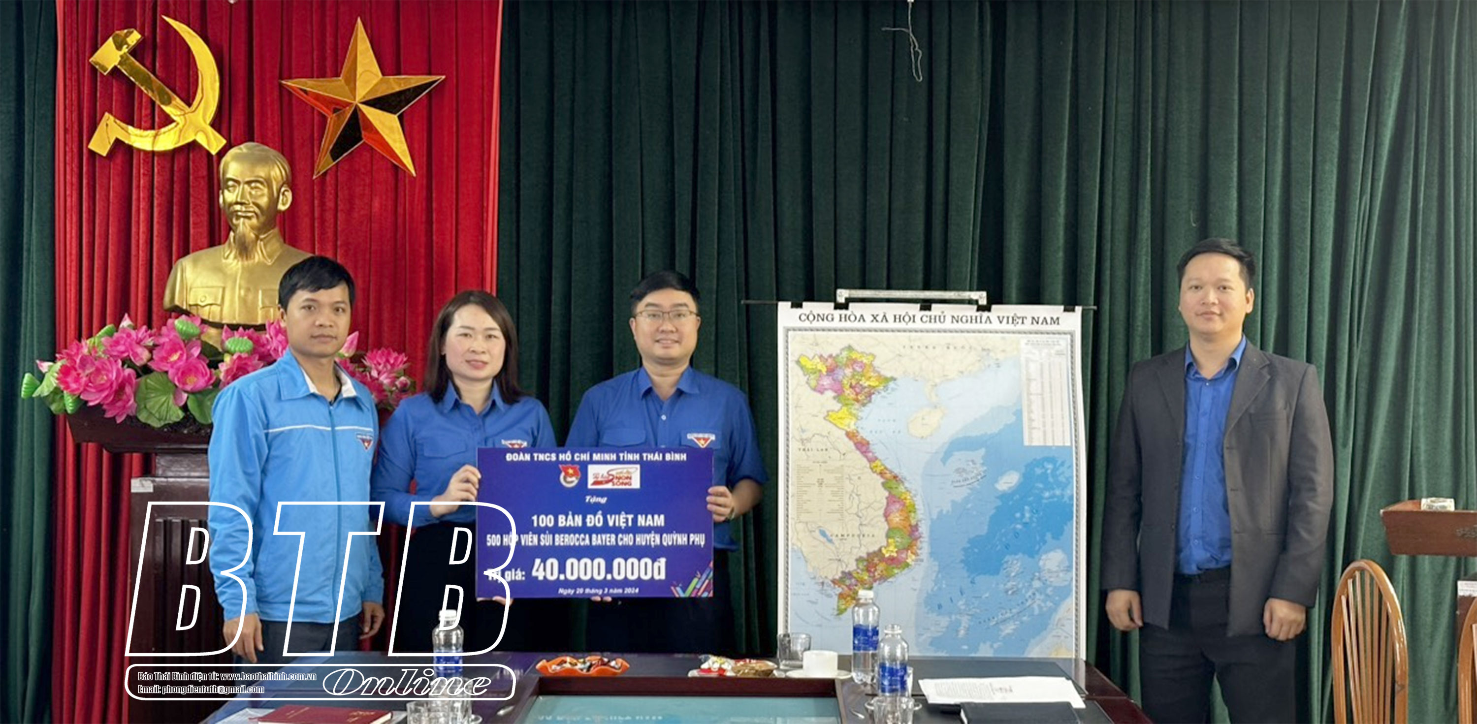 Cũng trong sáng ngày 21/3, Tỉnh đoàn đã tặng 100 bản đồ Việt Nam và 500 hộp viên sủi bổ sung các vitamin cho Huyện đoàn Quỳnh Phụ để trao cho các cơ sở đoàn thực hiện các hoạt động tình nguyện; lãnh đạo Tỉnh đoàn, Huyện đoàn Quỳnh Phụ, cán bộ, giáo viên, thanh niên tham gia trồng cây trên “Con đường thanh niên” của Đoàn Trường Trung cấp Nông nghiệp Thái Bình.