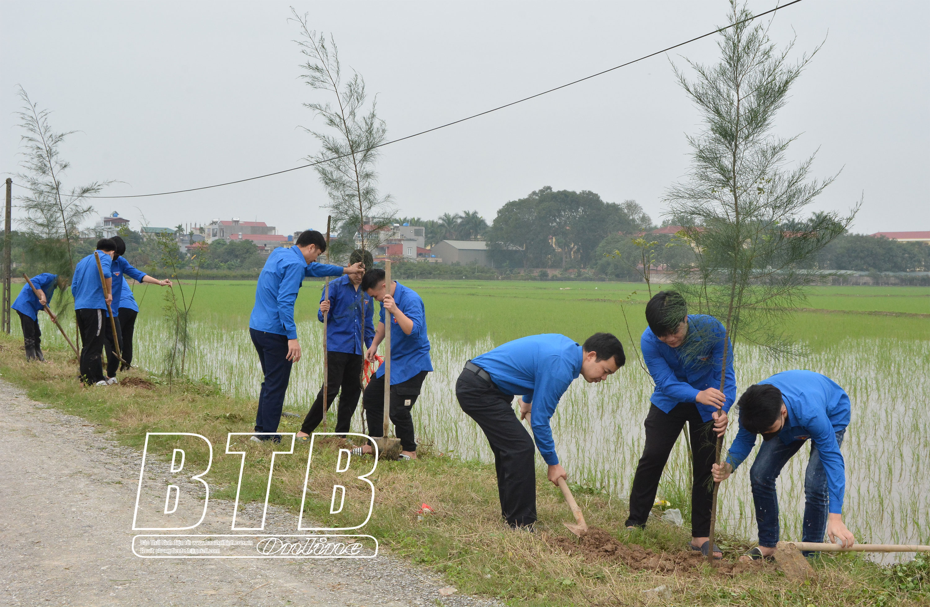 Cán bộ, đoàn viên, thanh niên trồng cây trên “Con đường thanh niên” của Đoàn Trường Trung cấp Nông nghiệp Thái Bình.