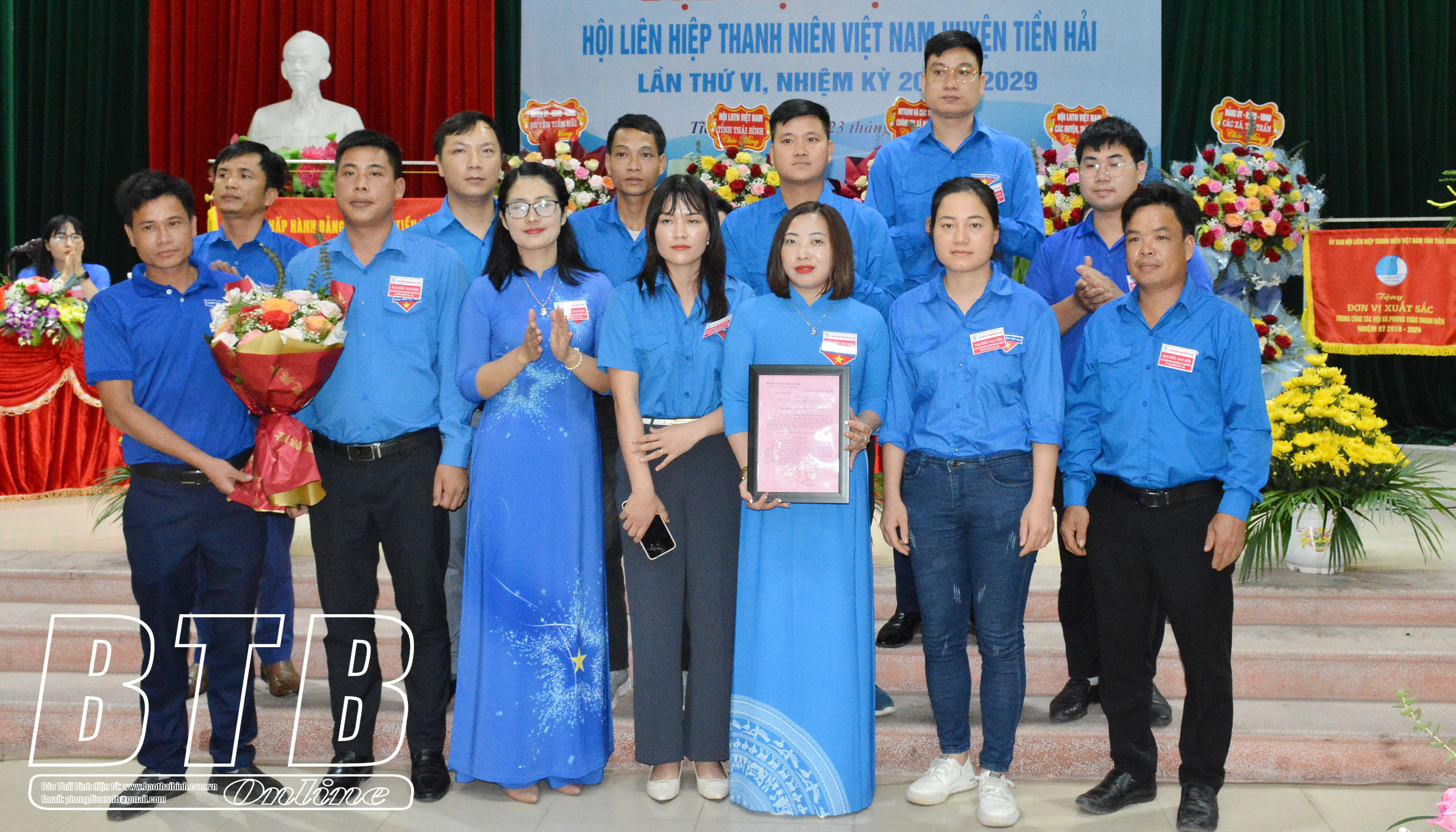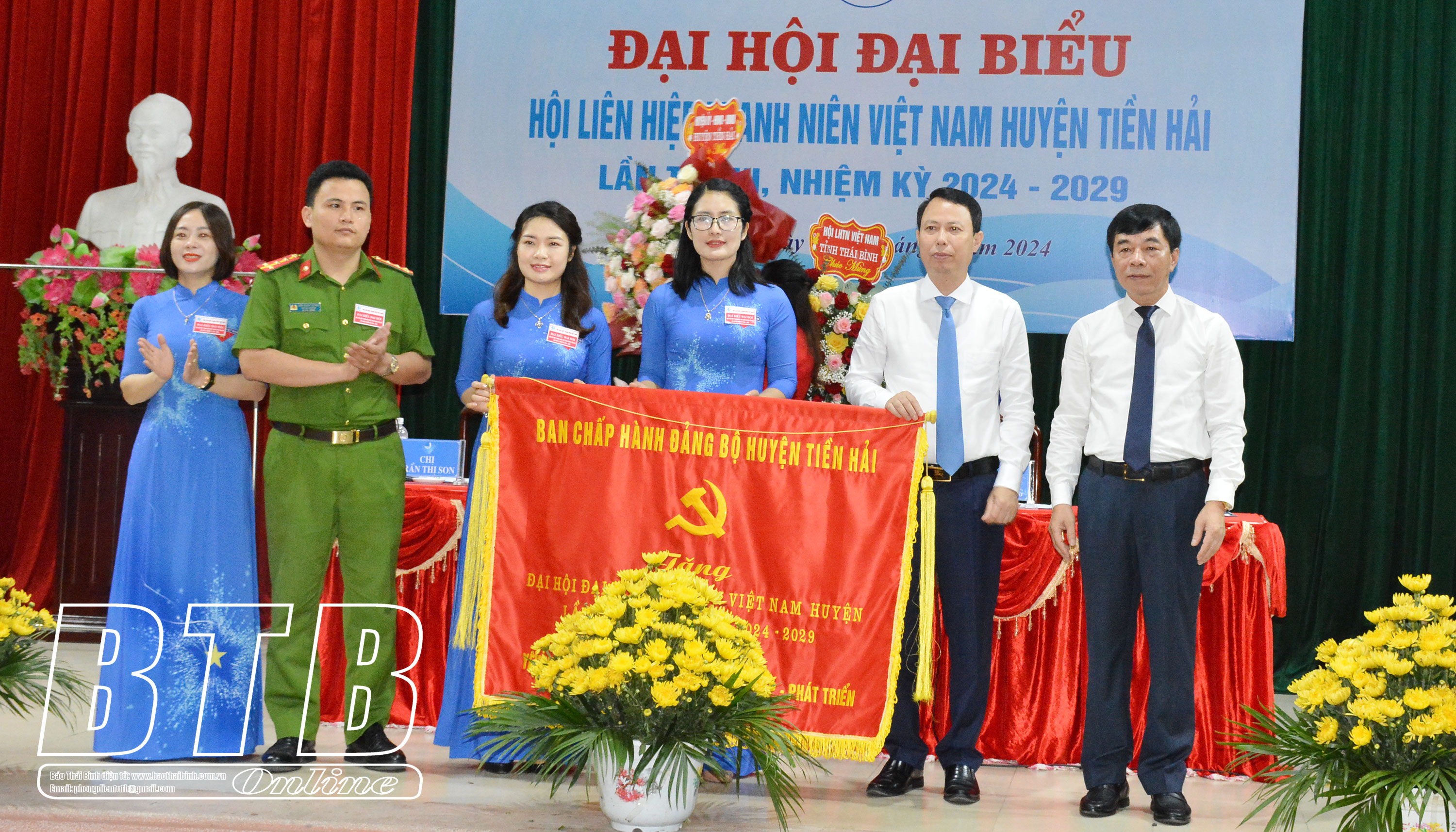 Ủy ban Hội LHTN huyện Tiền Hải nhận cờ đơn vị xuất sắc trong công tác hội và phong trào thanh niên nhiệm kỳ 2019-2024.