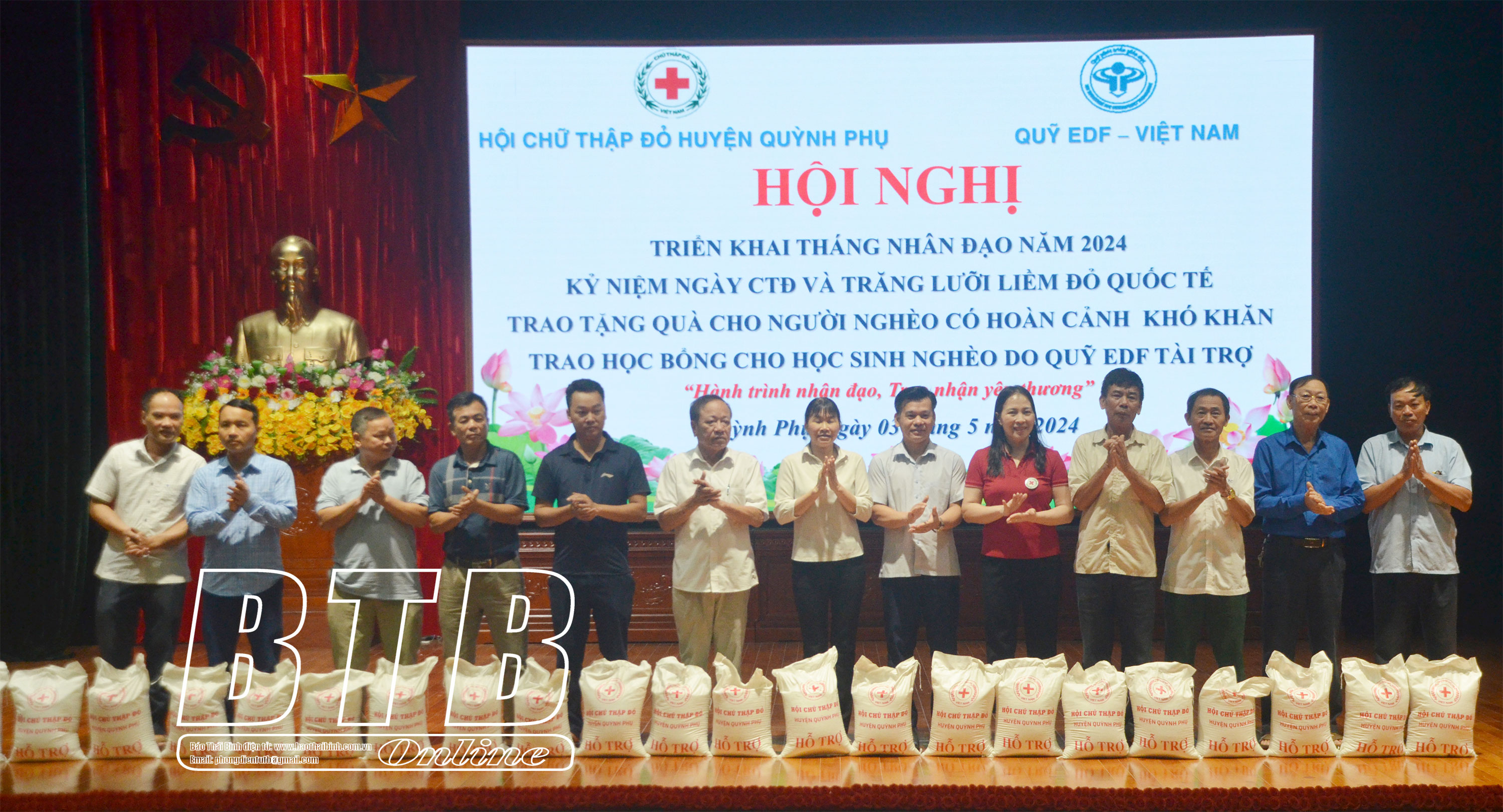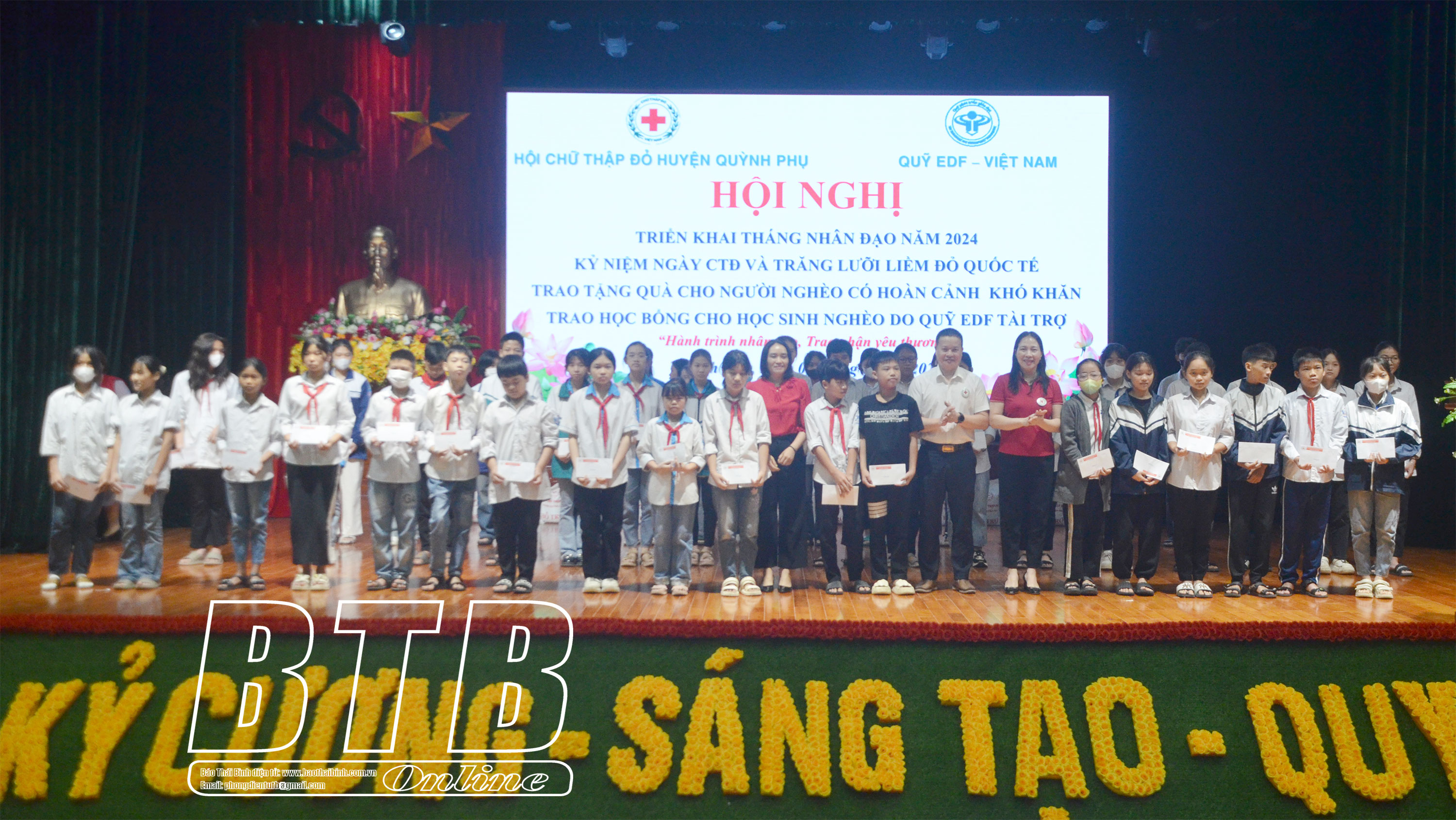 Nhân dịp này, Hội Chữ thập đỏ huyện Quỳnh Phụ phối hợp với quỹ EDF của Nhật Bản trao 154 suất học bổng cho học sinh nghèo vượt khó với tổng số tiền trên 130 triệu đồng; Hội Chữ thập đỏ huyện trao 20 suất quà và hỗ trợ gạo cho người nghèo, người có hoàn cảnh khó khăn.