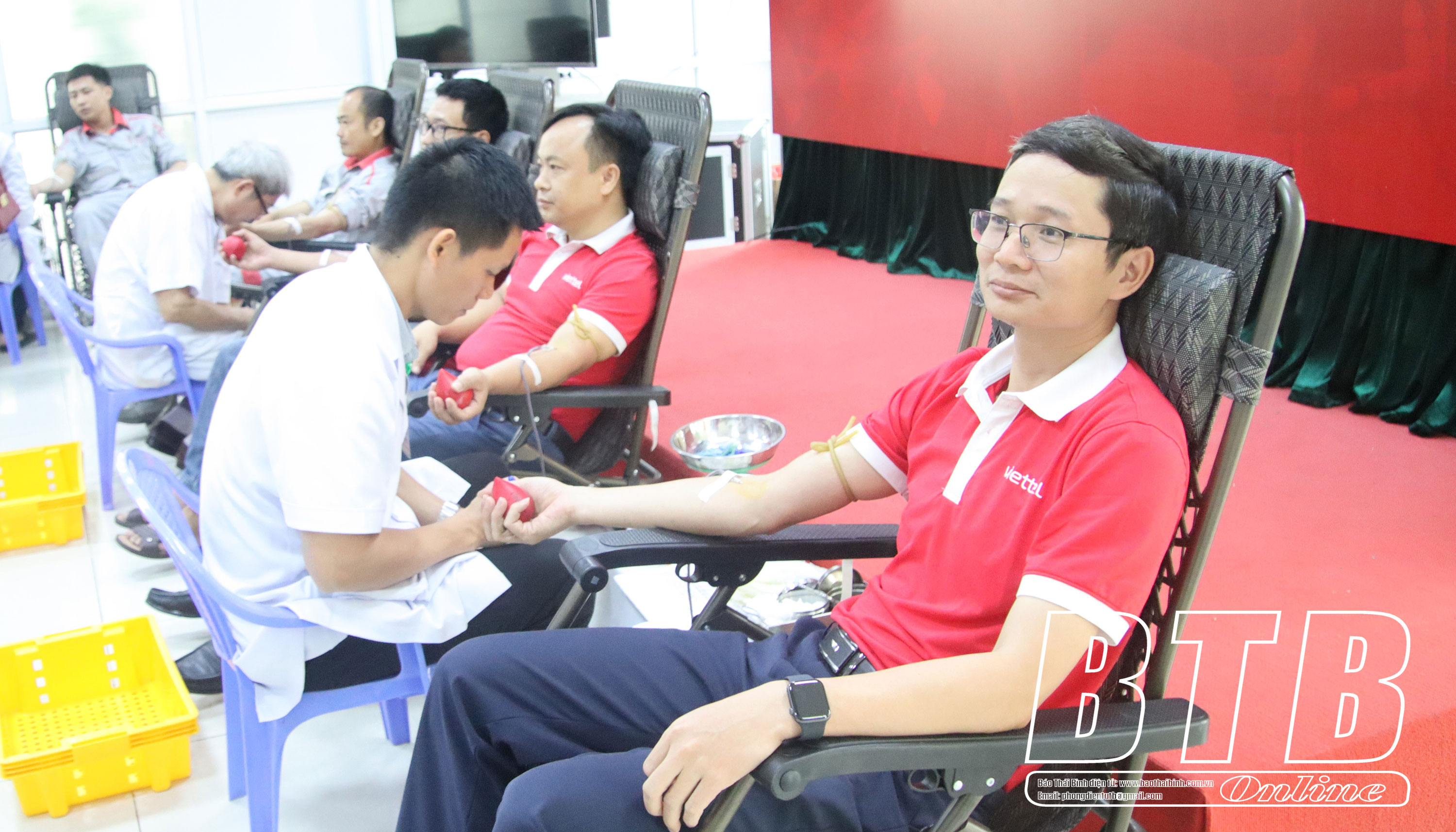 Cán bộ, công chức, viên chức, người lao động Viettel Thái Bình tham gia hiến máu tình nguyện.