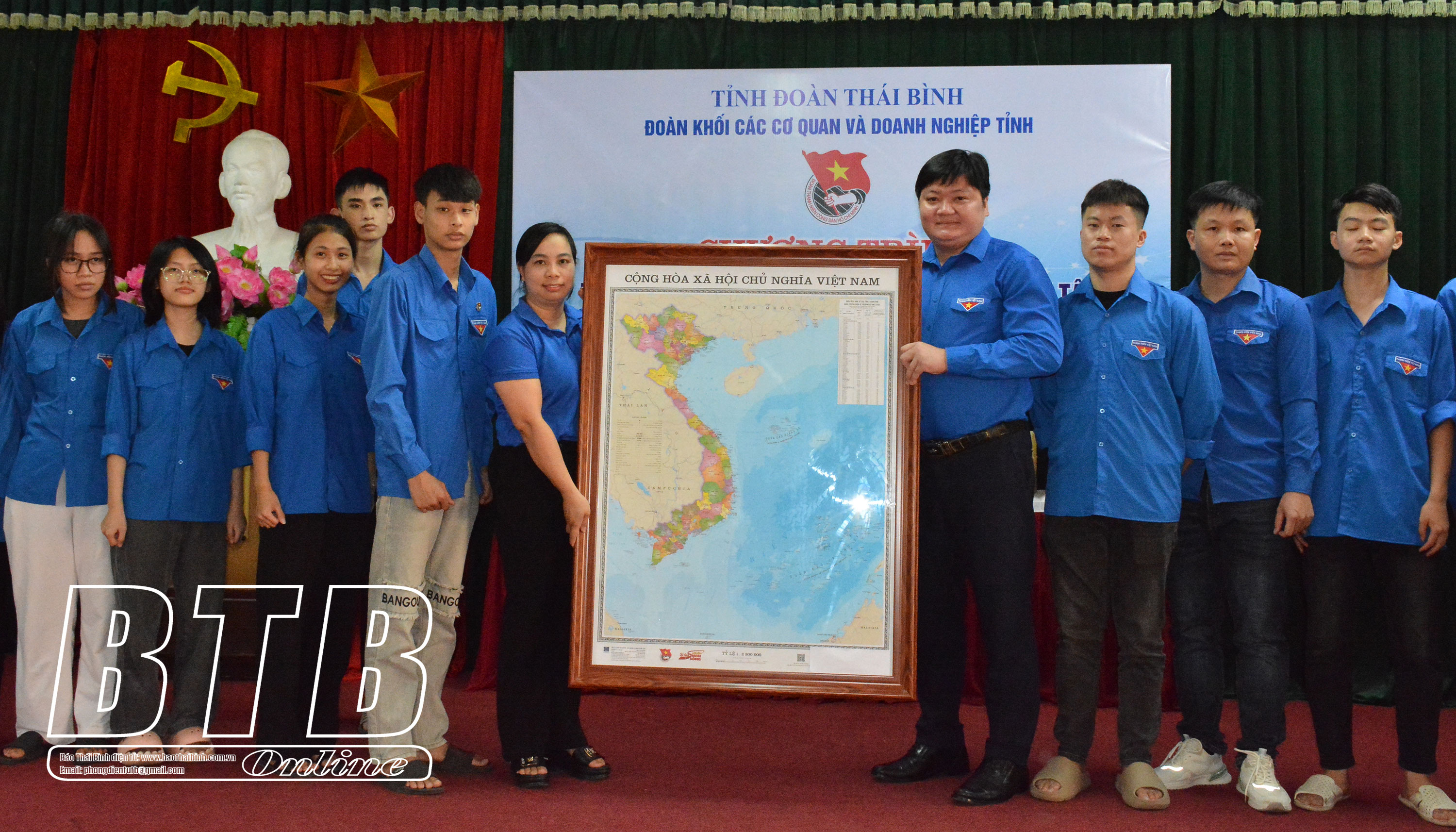 Nhân dịp này, hưởng ứng cuộc vận động “Tự hào một dải non sông” Đoàn Thanh niên Khối Các cơ quan và Doanh nghiệp tỉnh đã trao bản đồ Việt Nam cho Đoàn Thanh niên Trường Trung cấp cho người khuyết tật Thái Bình.